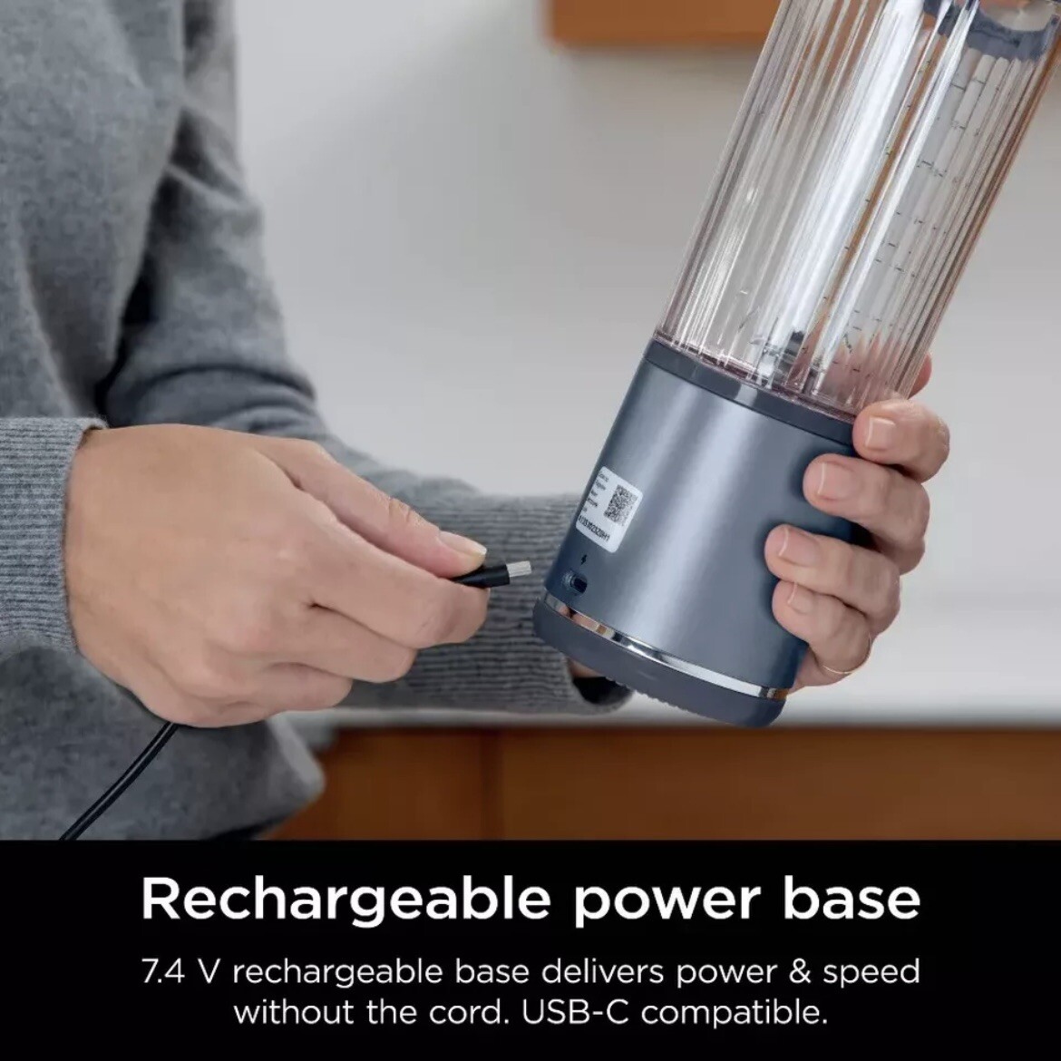 This portable blender is a game-changer! The powerful motor crushes ice and blends smoothies effortlessly, and the 18oz size is perfect for on-the-go use. The sleek silver and denim blue design looks stylish, and the battery lasts long enough for multiple blends. Easy to clean and super convenient—I use it daily for quick, healthy drinks. Highly recommend!