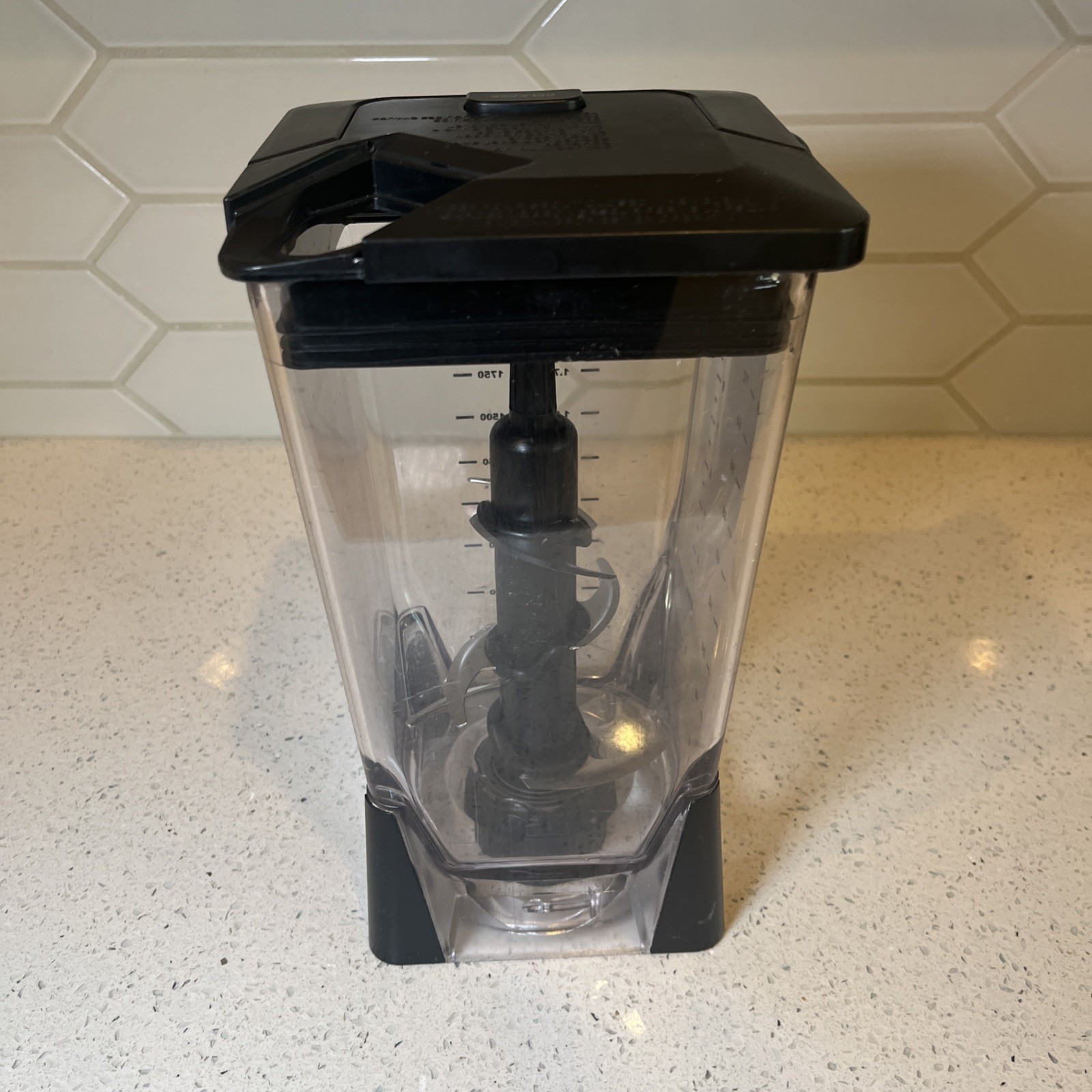Note - The lid is missing the opening flap. The Ninja Blender 72 oz 9 Cup Pitcher Jar and Blade is a professional-grade countertop blender designed for blending a variety of ingredients such as fruits, sauces, frozen drinks, and smoothies. With a capacity of 72 oz and 6 blades, this electric blender operates at high speed to liquefy and puree ingredients with ease. Made from black plastic, this Ninja blender features a locking lid, dishwasher-safe parts, and is multipurpose. It includes the pitcher, blades, and lid as components, making it a convenient and efficient tool for blending tasks in your kitchen.