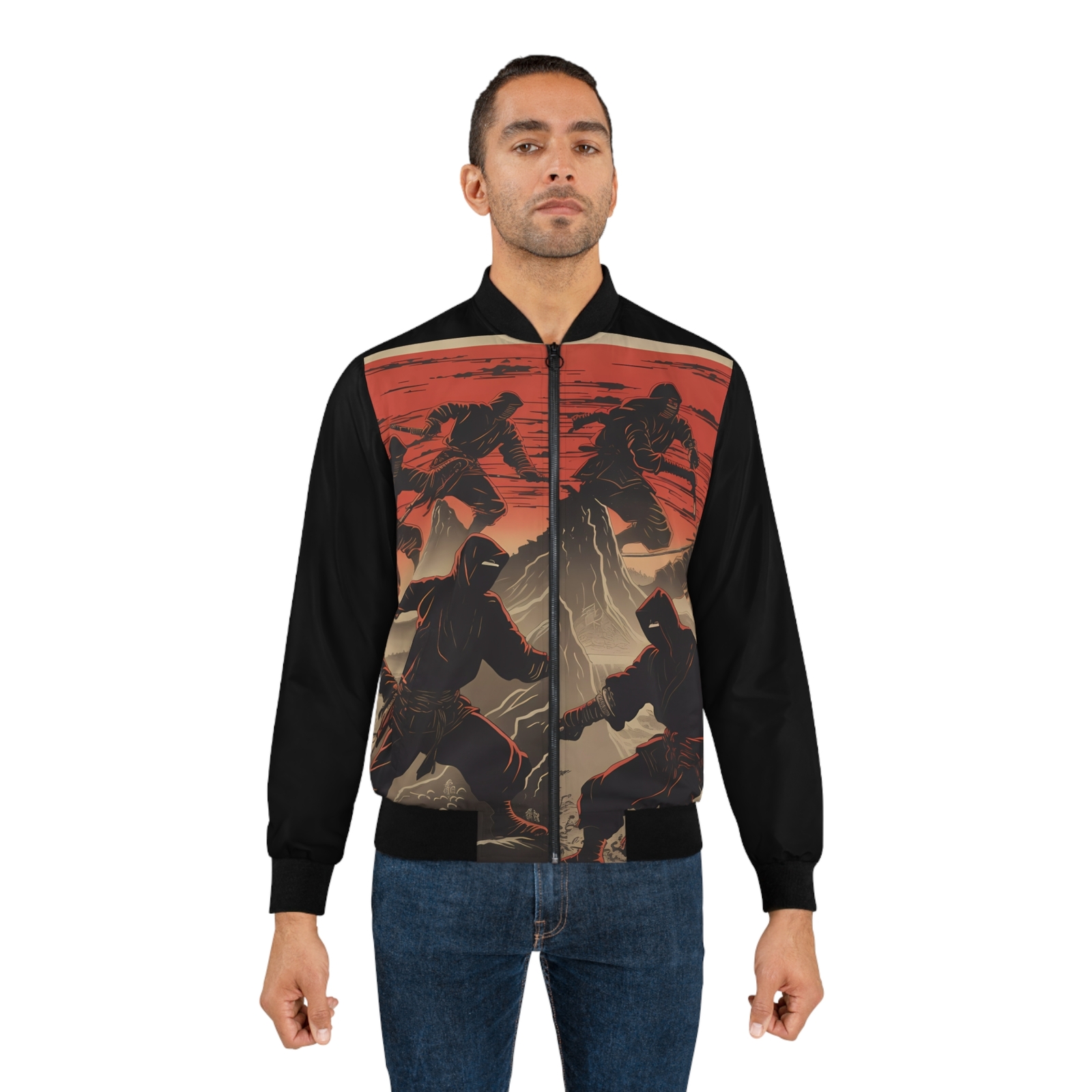 This ninja bomber jacket is a must-have for anyone who loves streetwear with an edge! The lightweight polyester fabric keeps it comfy yet durable, perfect for everyday wear or outdoor activities. The bold all-over print makes a statement, while the rib knit cuffs and collar add a snug, stylish fit. Whether you're into martial arts or just want a standout piece, this jacket delivers both style and comfort effortlessly. Love the unique design—definitely a conversation starter!