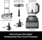 Store New Arrivals Add to Favorite View Feedback Contact Ninja Food Processor, Professional Plus, 1000 Peak Watts, 4 Functions for Chopping, Slicing, Purees & Dough with 9-Cup Processor Bowl, 3 Blades, Food Chute & Pusher, Silver, BN601 Description Item model number BN601 Included Components Quad Chopping Blade, 9-Cup Precision Processor Bowl with Feed Chute Lid and Pusher, 20-Recipe Inspiration Guide, Reversible Slicing & Shredding Disc, Disc Adapter, 1000-Peak-Watt Motor Base, Dough Blade Style 9-Cup Food Processor Special Feature Programmable Power Source AC adapter Number of Speeds 3 Color Silver Bowl Capacity 4.5 Pounds Brand Ninja Country of Origin China Is Dishwasher Safe Yes Item Weight 7.65 pounds Product Care Instructions Dishwasher Safe Model Name Ninja BN601 Recommended Uses For Product Kitchen Blade Material Stainless Steel Wattage 1000 watts Material Plastic Product Dimensions 7.76"D x 9.88"W x 16.02"H Item Weight 765 Pounds Voltage 120 Manufacturer SharkNinja POWERFUL PERFORMANCE: Equipped with a 1000-peak-watt motor, this Ninja food processor effortlessly handles tough ingredients, ensuring smooth and consistent results every time. AUTO-IQ TECHNOLOGY: Features 4 Auto-iQ intelligent preset programs that take the guesswork out of food prep, providing one-touch control for chopping, slicing, pureeing, and dough making. LARGE CAPACITY: The 9-cup bowl is perfect for large batches, making it ideal for family meals, entertaining, or weekly meal prep, saving you time and effort in the kitchen. PRECISION BLADES: Includes stainless steel precision blades designed for optimal performance, ensuring even chopping, slicing, and pureeing of all your ingredients. DOUGH BLADE INCLUDED: Comes with a specialized dough blade that makes mixing dough for bread, pizza, and pastries a breeze, delivering professional-quality results at home. EASY TO CLEAN: All removable parts are BPA-free and dishwasher safe, making cleanup quick and hassle-free, so you can spend more time enjoying your culinary creations. MODERN DESIGN: Sleek silver finish and compact design fit seamlessly into any kitchen decor, while the sturdy construction ensures long-lasting durability and performance. USER-FRIENDLY: Intuitive controls and easy assembly make this food processor accessible for all skill levels, from novice cooks to experienced chefs, enhancing your cooking experience. SAFETY FEATURES: Built-in safety mechanisms ensure the processor operates only when properly assembled, providing peace of mind during use and preventing accidents. VERSATILE FUNCTIONALITY: Perfect for a wide range of tasks including chopping vegetables, slicing fruits, pureeing hummus, and mixing dough, making it an essential tool for any kitchen. The Ninja brand has been a leader in kitchen appliances delivering innovative products for decades. Now introducing the Ninja Professional Plus Food Processor—make food prep easier with its power, intelligence, and versatility. The 1000-peak-watt motor and preset programs chop veggies, shred cheese, and make smooth sauces and cookie dough from scratch—all at the touch of a button. The Ninja Powerful 1000-Peak-Watt Food Processor with Auto-iQ Technology is designed to revolutionize your kitchen experience with its modern, innovative, and user-friendly features. This high-performance appliance is equipped with a robust 1000-peak-watt motor that effortlessly tackles even the toughest ingredients, ensuring smooth and consistent results every time. One of the standout features of this food processor is its Auto-iQ Technology. With 4 intelligent preset programs, it takes the guesswork out of food preparation. Whether you're chopping, slicing, pureeing, or making dough, the one-touch control simplifies the process, allowing you to achieve perfect results with minimal effort. The 9-cup capacity bowl is ideal for large batches, making it perfect for family meals, entertaining, or weekly meal prep. This generous size saves you time and effort, allowing you to prepare more food in one go. The precision blades, made from high-quality stainless steel, are designed for optimal performance, ensuring even chopping, slicing, and pureeing of all your ingredients. For those who love baking, the included dough blade is a game-changer. It makes mixing dough for bread, pizza, and pastries a breeze, delivering professional-quality results right in your kitchen. Cleanup is also a breeze with this food processor. All removable parts are BPA-free and dishwasher safe, making it quick and hassle-free to clean up after use. The sleek silver finish and compact design of the Ninja food processor fit seamlessly into any kitchen decor. Its sturdy construction ensures long-lasting durability and performance, making it a reliable addition to your kitchen arsenal. The user-friendly design features intuitive controls and easy assembly, making it accessible for all skill levels, from novice cooks to experienced chefs. Safety is a top priority with this appliance. Built-in safety mechanisms ensure the processor operates only when properly assembled, providing peace of mind during use and preventing accidents. The versatile functionality of this food processor makes it perfect for a wide range of tasks, including chopping vegetables, slicing fruits, pureeing soups, and mixing dough. It truly is an essential tool for any kitchen. The Ninja Powerful 1000-Peak-Watt Food Processor with Auto-iQ Technology is a must-have. Its powerful performance, intelligent features, and user-friendly design make it an invaluable addition to any kitchen. ABOUT US We offer the best prices around on high quality products. Our E-store includes media such as books, movies, music and games while offering electronics, toys, sporting apparel, clothing, tools, general home, garden items and more. SHIPPING We are always working hard to ensure your package arrives as soon as possible. Please understand that some factors like weather, high postal traffic, and the per