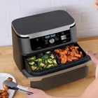 Shark-018 Ninja Foodi 7-in-1 DualZone FlexBasket Air Fryer with 11-Qt. MegaZone AD600CO Meet the Ninja Foodi FlexBasket Air Fryer with 11-qt MegaZone. With the MegaZone, you can now cook larger proteins or entire meals that feed your whole family all in one basket. Insert the basket divider to cook with two 5.5 qt baskets or remove it to cook in 1 MegaZone for full 11-qt capacity. Eliminate back-to-back cooking with DualZone Technology. Use Smart Finish to cook 2 foods, 2 ways that finish cooking at the same time, or sync the settings across both zones with Match Cook. Plus, it features 7 cooking functions (air fry, bake, roast, proof, reheat, keep warm and dehydrate) so no matter what you are craving, you can make it all in one extra-large air fryer. Then, when you’re done cooking, cleanup is a breeze with nonstick and dishwasher safe crisper plates and basket. DualZone™ Technology Eliminate back-to-back cooking with 2 baskets that let you cook 2 foods, 2 ways. Smart Finish Cook 2 foods using 2 different settings and have them finish at the same time. Match Cook Copy settings across zones while the divider keeps flavors, marinades, and sauces from spilling over into the other zone. Guilt-free fried favorites Up to 75% less fat than traditional frying methods. Proof your bread Create the perfect environment for dough to rest and rise right in your air fryer using the Proof function. Easy to clean 11-qt air fry basket and crisper plates are nonstick and dishwasher safe.
