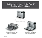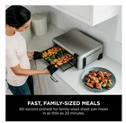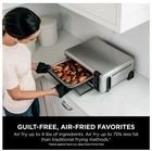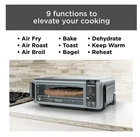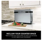 Highlights 9 versatile cooking functions: Air Fry, Air Roast, Air Broil, Bake, Bagel, Toast, Dehydrate, Keep Warm, and Reheat Space-saving design flips up and away for easy storage against your backsplash Generous capacity—fits a 13" pizza or up to 9 slices of toast Air fries up to 4 lbs. of food for crispy, guilt-free meals Easy to clean with a removable crumb tray and accessible back panel Includes: Wire rack, 13" x 13" sheet pan, air fry basket, removable crumb tray, and recipe book BPA-free 36" cord with built-in cord storage Sleek stainless steel finish Power: 1750 watts / 120 volts Dimensions: 21.06" x 10.04" x 16.34" Weight: 20 lbs