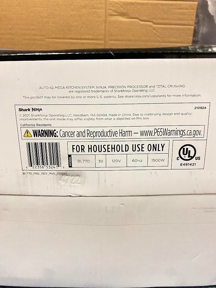 Power Source:ElectricVoltage:120 VShips from:USAItem Weight:9.2 poundsProduct Dimensions:9.5 x 8.2 x 17.8 inchesMPN:BL770item_length:8.2Components Included:Base, BlenderPower:1500 WBrand:NinjaColor:ClearEAN:0711181755152Material:PlasticUPC:744110192384gtin13:744110192384Type:PitcherShipping Weight:17.45 poundsModel:BL770Number of Items:6Item model number:BL770Capacity:72 ozManufacturer:Shark/Ninjaitem_width:17.8