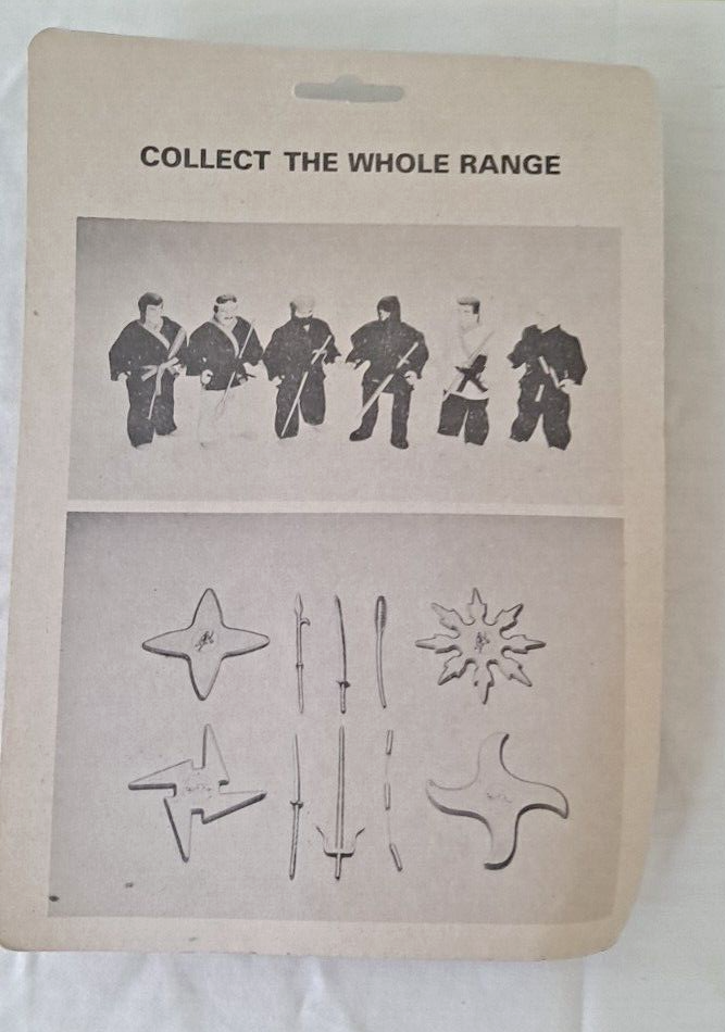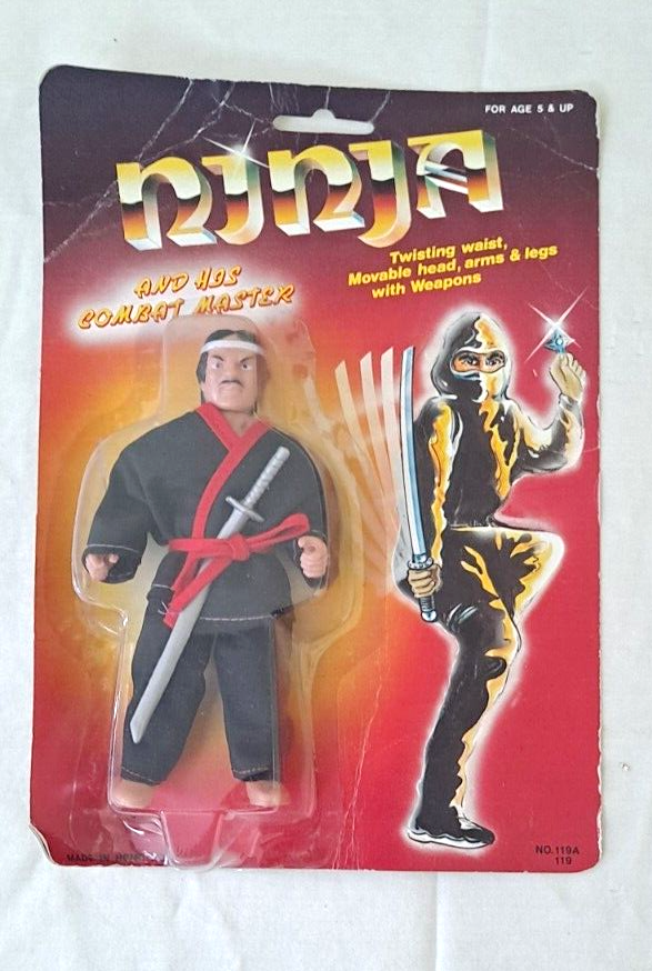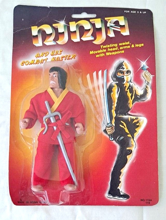 These two "Ninja Motu Bootleg" action figures are part of a complete series of 6, featuring a character from the 90's with a unique dress accessory. Manufactured in China from plastic, these Ninja figures stand at 6 inches tall and are recommended for ages 5-7. They come in their original packaging and are a rare find for collectors. This lot does not include any insertion bundles or AFA certification.