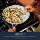 Ninja NeverStick Ceramic Pro 12-Piece Cookware Set, Stone Highlights What's Included: 9.5” Fry Pan with Glass Lid, 10.25” Fry Pan, 12” Fry Pan, 2qt Saucepan with Glass Lid, 3.5qt Saucepan with Glass Lid, 3qt Saute Pan with Glass Lid, 5qt Stock Pot with Glass Lid 4mm thick heavy gauge aluminum base for even heat distribution Pots and pans are oven and broil-capable to 600°F, dishwasher safe, and metal utensil safe. All Range Capable: Compatible with gas, electric, glass ceramic, and induction stovetops Cooking surface made with no PTFE and PFOA, no lead or cadmium Pan: Aluminum, Handle: Stainless Steel Introducing Ninja NeverStick™ Ceramic Pro Cookware Experience the Ninja NeverStick™ Ceramic Pro cookware, a game-changer in your kitchen. This isn't just nonstick, it's NeverStick™, crafted to be 100% PTFE free. The Ceramic Pro Promise ensures long-lasting use and a worry-free cooking experience without sacrificing the NeverStick™ performance. The cooking surface is free from PTFE, PFOA, lead, cadmium, and hard anodization, giving you peace of mind while cooking. Revolutionary Design and Construction Our exclusive construction delivers the 100% performance of NeverStick™ without the use of PTFE. This cookware is 5x more scratch-resistant compared to Caraway ceramic coated cookware, allowing you to use any utensil without worry. It's also 3x more scrub resistant, withstanding harsh brushes and sponges, and 20% more heat resistant, able to handle oven and broiler temperatures up to 600°F. Long-Lasting Performance and Durability The exclusive NeverStick™ cooking surface with deeper embedded NeverStick™ primer unlocks unmatched cooking capabilities. The 4mm thick heavy gauge aluminum base ensures even heat distribution, eliminating hot spots. The sleek flat, fitted tempered glass lids provide convenient storage and maximum visibility while cooking. Built for Versatility and Compatibility The pots and pans in this set are broil-capable to 600°F, dishwasher safe, and metal utensil safe, making them a versatile addition to any kitchen. They are also compatible with a variety of stovetops, including gas, electric, glass ceramic, and induction. 12.5" x 9" W x 7.5" H 22.7 lbs
