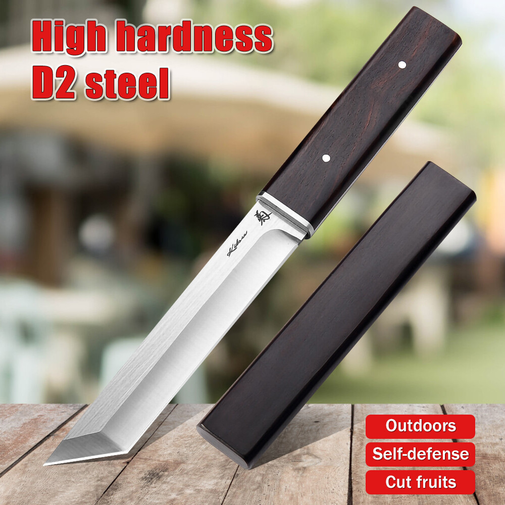 Japanese D2 Steel Blade Fixded Knife Survival Camping Hunting Knife 60 HRC Hardness Eumwood Handle Straight Knife Outdoor Knife Blade material: D2 Stainless steel Handle material: ebony wood Hardness: 58-60HRC All Length: 235 mm Blade Length:98mm weight: 232 g