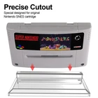 Product Description For Nintendo SNES Clear Game Card Display Stand Cartridge Holder Compatible with NTSC PAL Durable Portable Plastic Storage Shelf Showcase Your Vintage Collection Elevate your gaming collection with our For Nintendo SNES Clear Game Card Display Stand . Specifically designed for original Nintendo SNES cartridges, this stand ensures your vintage games are always the center of attention. Premium Quality Material : Crafted from high-quality plastic, this display stand offers a modern and premium appearance for showcasing your vintage games. The transparent material allows for easy viewing of your cartridges, showcasing their vibrant colors and intricate details. Sturdy and Durable : Designed with a solid base, this stand provides stability and durability, making it a reliable choice for long-term display. The robust construction ensures your cartridges stay securely in place. Low Maintenance : No special cleaning materials are required to keep this stand looking pristine. Simply wipe it down with a soft cloth to maintain its clarity and shine. Perfect for Collectors : Ideal for avid collectors to proudly display their prized SNES game cartridges. This stand is not just a storage solution; it's a statement piece that reflects your passion for retro gaming. Sleek and Stylish Design : With its modern and minimalist design, this stand complements any decor, adding a touch of elegance to your display. The transparent material allows for easy viewing of your cartridges, showcasing their vibrant colors and intricate details. Product Specifications : Material : Plastic Color : Transparent Dimensions : 11.9 x 5 x 2.15 cm Thickness : 3 mm Compatibility : Nintendo SNES game cartridges (NTSC and PAL versions) Package Includes : 1x Game Cartridge Holder for Nintendo SNES Note : The game cartridge seen in the photo is for demonstration purposes only. Game is not included.