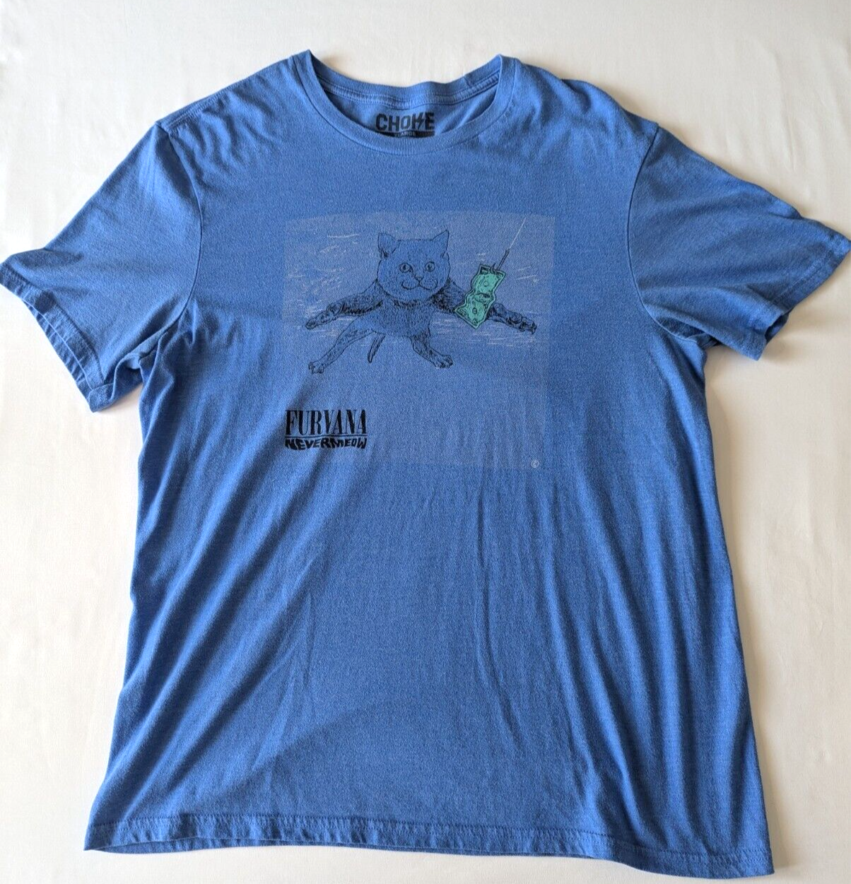 Nirvana Furvana Nevermeow Graphic Tee in XL - Fun Cat Lover Tshirt