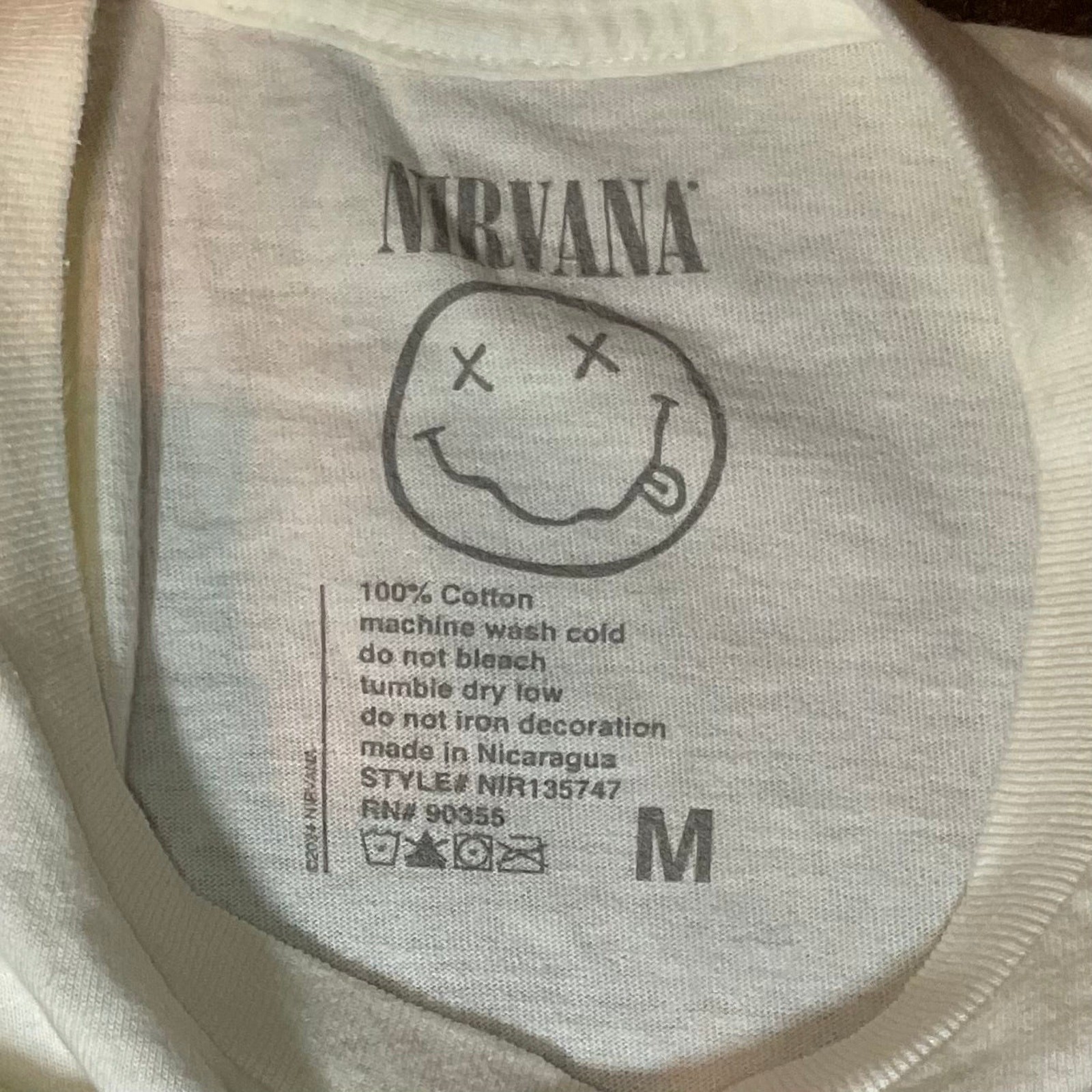 π Size: Medium π¨ Color: Off-white with bold gold, pink, and silver tones π Design: Classic Nirvana smiley logo in a triple-color fade π₯ Print: High-contrast vintage look with glittery metallic finish π€ Band: Official Nirvana merch π¦ Material: 100% Cotton π Made in: Nicaragua π§Ό Care: Machine wash cold, tumble dry low