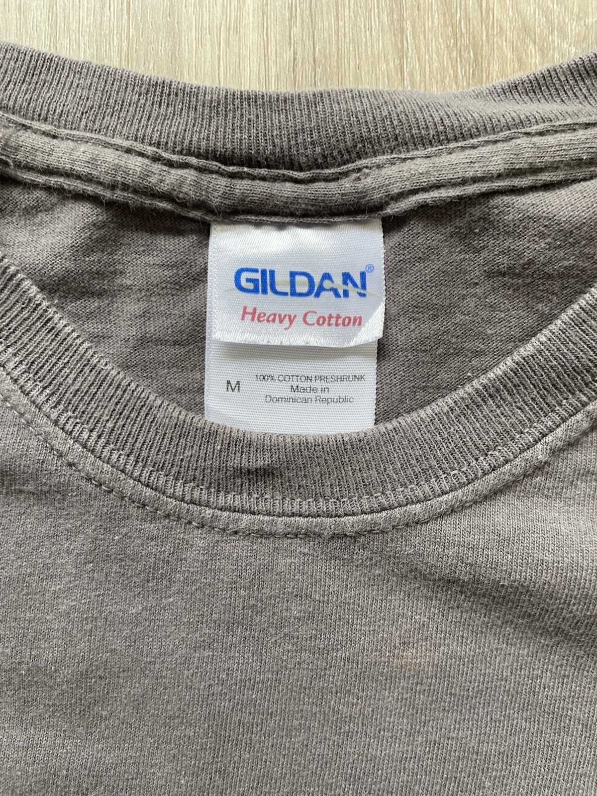 This vintage Nirvana smiley shirt for men in size M is a solid gray color with a crew neck and short sleeves. Made of cotton, it is machine washable and features the band's authentic logo from the 2008 release. With a regular fit and easy care instructions, this T-shirt is perfect for all seasons and breathable for comfortable wear. Ideal for fans of 90s music and collectors of vintage clothing, this Gildan shirt is a timeless piece from the Dominican Republic.