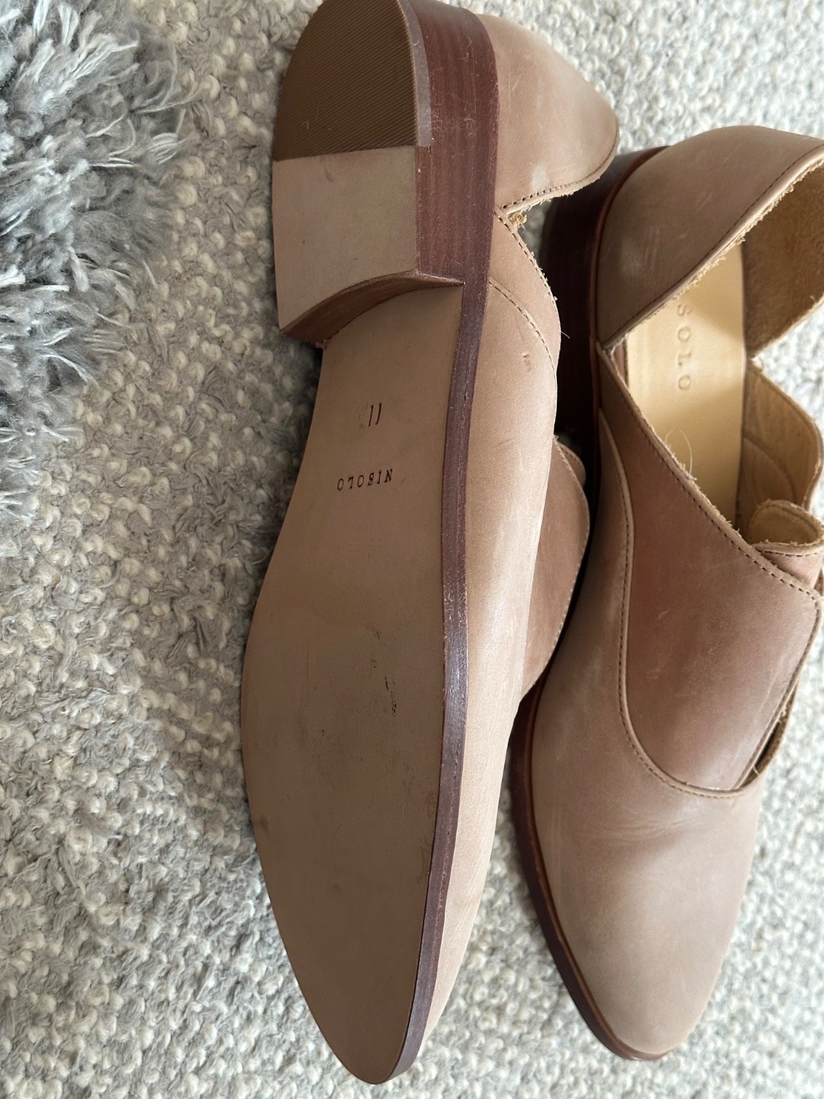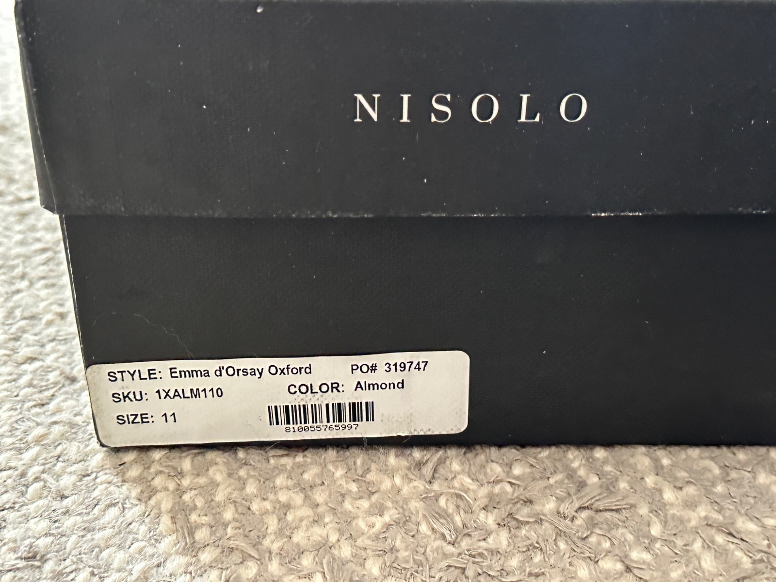 Basically brand New, Never worn outside, only tried on a couple times inside. The Nisolo Emma D'Orsay Oxfords Dress Shoes in women's size 11 tan are a stylish and elegant choice for any outfit. Made of leather with a unique d'orsay design, these shoes feature a comfortable flat sole and a flattering loafer style. The almond/beige color adds a touch of sophistication to the overall look, making them a versatile option for both casual and more formal occasions.