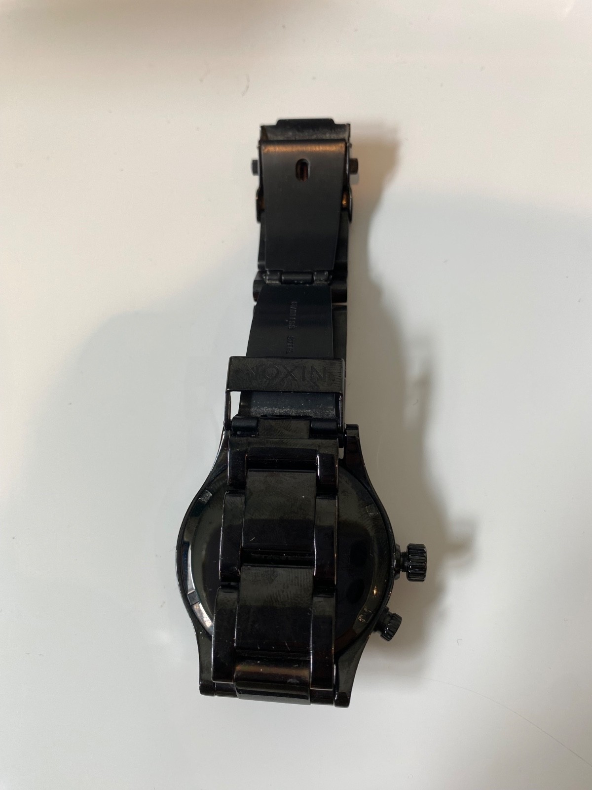 Love this Nixon watch—sleek, durable, and still looks great despite minor wear. The stainless steel holds up well, and the all-black design stays stylish. Only needs a new battery but keeps perfect time. Fits comfortably, and the bezel/case are flawless. A solid buy for the price!