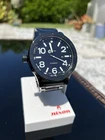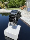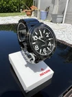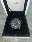 The GRAND DADDY of the Nixon fleet, this is the Nixon 51-30 CERAMIC. This is a Swiss Made Automatic from Nixon’s rare and sought after ELITE CLASS of watches! Unlike other Nixon watches the ELITE class ceramics have FREE lifetime servicing from Nixon's repair shop. This bad boy was $2600 when it was available in stores. These are long sold out and VERY HTF! This black version is possibly the ONLY one for sale anywhere! 3 hand Swiss Made mechanical with date, automatic winding with sweeping seconds and 25 jewels. Custom 300-meter solid ceramic body with a stainless steel skeleton, external rotating ceramic bezel with countdown timer, scratch-resistant sapphire crystal, custom numbered case-back with hardened mineral crystal window and ceramic screw crown at 9 o'clock position. Ceramic Body - 5x Harder than Steel Ceramic watches are valuable due to their exceptional durability, scratch resistance, lightweight nature, hypoallergenic properties, and ability to maintain a sleek, modern aesthetic, making them a desirable choice for those seeking a long-lasting and stylish timepiece. Very lightly worn. Maybe 5 times over a 3 year span. Excellent condition! OG BOX, Booklet, tags etc. I will include some Nixon goodies as well. SAME DAY SHIPPING IN MOST CASES!!!