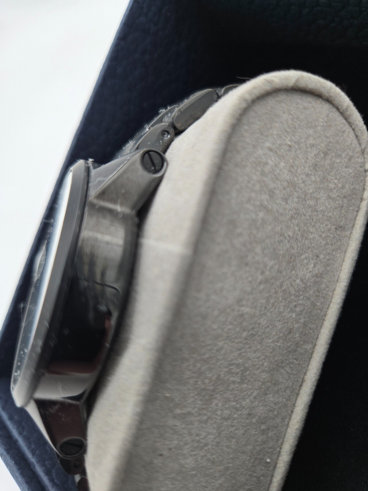 This Nixon wristwatch features a sleek matte black case and band with a beautiful rose gold dial and analog display. The watch is powered by a 3 hand quartz movement and includes a date window. The matte black stainless steel case and band provide a durable and stylish option for any occasion. This watch is perfect for those who appreciate a classic and timeless design. Great watch, it does have a couple nicks as shown in photos.