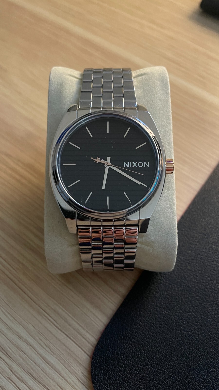 The Nixon Time Teller Star Wars Phasma Silver Wrist Watch is a stylish and classic timepiece for men. Featuring a polished stainless steel case with a black bezel, the silver dial and band add a touch of sophistication. This analogue watch has a quartz movement and comes in its original box, making it a perfect gift for any Star Wars fan or watch enthusiast. With a case size of 37mm, this Nixon watch is both sleek and functional, ideal for everyday wear.