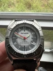 Nixon water resistant watch, smaller face. Young men or women’s watch. Not running , would need a new battery. Band is rubber. Perfect for swimming. No scratches. Face measures 1 and 1/4 “ x 1 and 1/4 inch. Watch with band measures 8.5 inches. Back of watch says STOP team designed, custom built