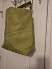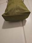 The Niya Large Green Hand Bag is a stylish and spacious tote style handbag made from durable canvas material with a solid green exterior and gold hardware accents. It features a zip closure and comes equipped with an additional strap for added versatility. The bag has a large size with dimensions of 15 inches in width, 13 inches in height, and 6 inches in depth, making it perfect for carrying everyday essentials. The interior is lined with beige fabric and the handle/strap color is also green, creating a coordinated and fashionable look.