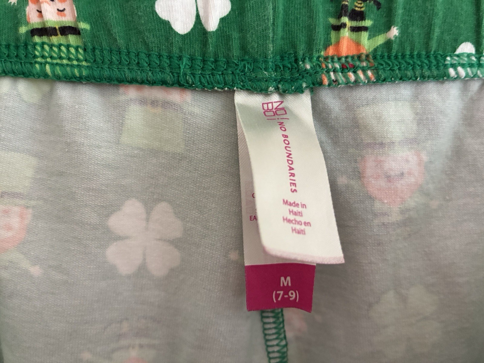 No Boundaries Women's Juniors St. Patrick's Day Leprechaun Clover Cotton Leggings Green M. Condition is pre-owned. Smoke free, pet free home. Shipped via USPS Ground Advantage. In very good condition. Free of rips or stains.