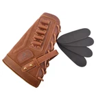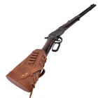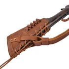 Leather Gun Buttstock 【Material】Made of genuine cowhide leather and suede inner cushion makes you feel very comfortable when carry, heavy-duty hand stitching are durable. 【.357 Gun Buttstock Holder 】Designed to hold up to 5pcs.357, .30-30, .38 .32Win Spcl.32-40. 【Gun Buttstock Size】8" x 5 5/8" x 1 7/8". Weight: 0.3kg. 4mm Thick Duarable leather lace for easy installtions. 【Leather Recoil Pad System】 Recoil Reducer Shoot Shoulder Pad designedfor the field shooter. Lightweight, leather recoil system is designed to allow quick, easy gun mounting in the field, provides valuable protection. 【For Right Handed Shooter】Fit Right Handed people. Ideal for those who are especially sensitive to firearm kickback. Your gunsling can loop over the leather loop which attached to our gunstock instead of drilling holein your gun. 【Package inclue】1x Leather Cheek Rest pad / 4x Stock Extender. 【Waxed Canvas String】Some customers reflect that the leather string of the buttstock is easy to break during installation, so we change to dia 5mm Oil Waxed string, which is easier to tye and duarable.