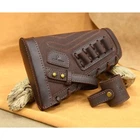 GunButtstock 【Material】Made of buffalo hide leather and waxed canvas, heavy-duty stitching and durable. Buttstock size: 8" x 5 ¾" x 1 ¾”. 【Ergonomic Buttstock】The edge of the gun buttstock that contacted with the shoulder is rounded, and provided 4 pieces neoprene inner cushions, which can greatly reduce 60% buffer force when shooting. 【Caliber .308 .30-06 .45-70】Fit for 4pcs .308 .40-65 .45-70 .22-250 .30-06 .300WIN, .40-40 .40-60 .40-65 .40-70 .44mag, .45 Long Colt, 7MM REM 6.8 SPC and .410 shotgun bullets as well. 【Caliber .357 .30-30 .38】Fit for 5pcs .357, .30-30, .35, .38 .32Win Spcl.32-40. 【Caliber .22LR .22MAG .17HMR】Fit for 8 pcs .22LR .22MAG .17HMR. 【Package Included】1pcs WAYNE'S DOG cheek rest pad. Barrel No Drill Mount 【Material】Made of premium crazy horse leather for strength and durability in the field. 【Anti-slip】5mm Neoprene inner cushion to prevent slippage, this design works so your gun will not roll, but will stay in place. 【For Guns Without Swivels】Our slip on leather loop requires no drilling into the wood of your rifle or shotgun, and adjustable to universal fit. 【Leather Loops Size】Fit Rifle 5 ¼” to 6” in girth. 【Package included】1pcs NO DRILL leather Barrel Mount for rifle or shotgun sling.