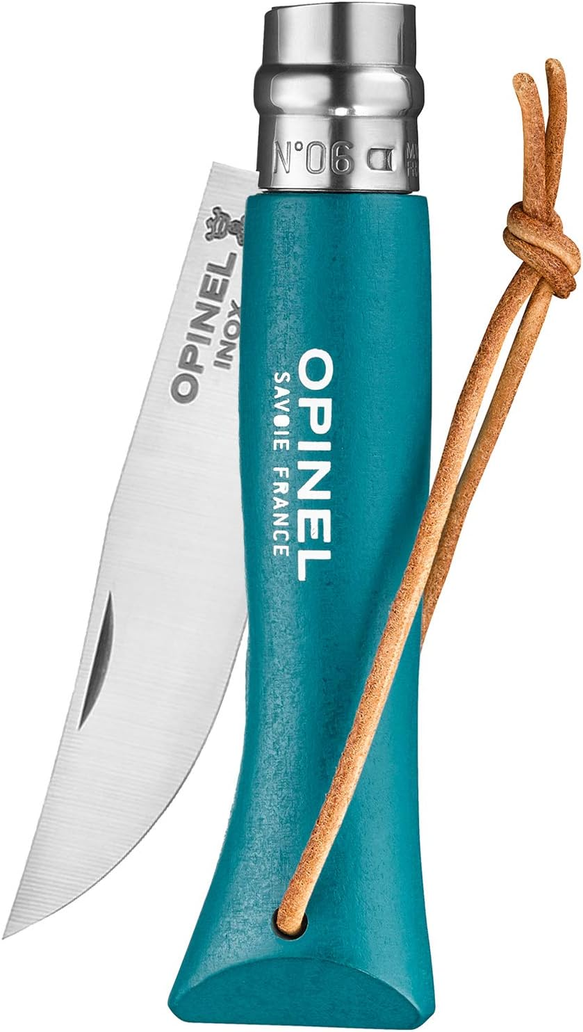 PERFECT POCKET CARRY: The No.06 folding knife is lightweight and just the right size for tossing into your bag or pocket, so you're never without an Opinel! Whether you're opening packages, or having an impromptu picnic, your No.06 has you covered. PATENTED VIROBLOC: A hallmark of Opinel everyday carry knives since it’s invention in 1955, the Virobloc ring offers a unique, thoughtful, and easy to use safety mechanism for locking the blade during use, during transport, and during storage. INOX BLADE: We use Sandvik 12C27 Modified Stainless Steel. It is anti-corrosive thanks to the addition of chrome and requires no special maintenance. Carbon content of at least 0.40% provides an excellent cutting edge and is easily sharpened. THE CROWNED HAND: In 1565 King Charles IX commanded every knife maker to stamp an emblem on their products to guarantee their origin and quality. In 1909 in order to honor this tradition Joseph Opinel chose the Crowned Hand as his emblem. AN ICON OF FRENCH CULTURE: Produced in the heart of the French Alps since 1890, Opinel knives draw simplicity and durability from their mountain roots. Opinel kitchen knives have been adopted worldwide and recognized as a design icon. Product Description THE No.06 COLORAMA STAINLESS STEEL POCKET KNIFE The No.06 is the smallest model that features the Virobloc safety ring which will lock the knife securely open, or closed. Take it everywhere, or hang it from places with the leather lanyard. The blade has been designed and perfected over generations to maximize the cutting quality and ensure it’s easy to sharpen after years of hard work. Use it in the garden, at the dinner table, or even on your next adventure. Keep the knife in your pocket, purse or toolbox and we are certain you'll love it for years to come. THE RIGHT FEATURES AT THE RIGHT COST Opinel uses Sandvik(R) 12C27 Modified stainless steel. The Swedish steel is well known for its anti-corrosive properties which requires minimal upkeep. Its carbon content of at least 0.40% provides an excellent cutting edge which is also easy to keep sharp. The patented VIROBLOC locking mechanism keeps your knife safely closed in your pocket and locks the blade open during use. The simplicity of the knife’s design and it’s sustainable wooden handle makes the knife lightweight too! THE PERFECT SIZE FOR EVERYDAY CARRY Both smart and simple, the Opinel folding knife is composed of 5 elements: the blade, the wooden handle, the fixed ferrule, the rivet and the rotating VIROBLOC locking ring which was added in 1955 to sizes No.06 and above. The knife is equipped with a 2.8 inch blade, open length 6.5 inches and weighs in at an efficient 45 grams! CARING FOR YOUR KNIFE All Opinel wooden-handle knives are not designed to be washed in the dishwasher. Heat and moisture will cause any wood to swell which will make the knife hard to open at times. Opinel suggests carefully hand-washing your knives and leaving them out to air dry. The Sandvik 12C27 Mod. Stainless Steel used for the blades is low maintenance, meaning it is highly resistant to rust and can be polished or cared for with simple organic oils. MADE IN THE FRENCH ALPS FOR OVER 130 YEARS Joseph Opinel designed his first pocket knife in 1890, creating a tool that is as robust and functional as it is simple and beautiful. From his workshop at the foot of the French Alps, Opinel forged a cult classic. Generations of artists, explorers, and farmers have carried the instantly recognizable, imminently useful Opinel knife in their pockets. Little has changed since 1890. Rooted in history and a commitment to craftsmanship, the Opinel family still makes their knives in the Savoie region of France. Each year, THEIR team of 150 employees in France manufactures over 5 million knives, ranging from outdoor tools to kitchen knives, all to honor Joseph Opinel’s focus on quality and simplicity.