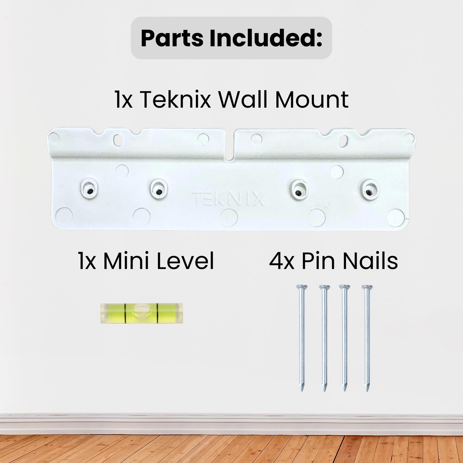 Easy Hammer-Only Installation - No need for drills, screws, or wall anchors! Install quickly and easily with just a hammer. Perfect for a hassle-free setup. No Studs or Wall Damage - Designed specifically for drywall, this mount requires no stud finding and leaves your wall damage-free. Enjoy a clean, professional installation without the mess. Compatible with Skylight 15-Inch Calendar (device not included). Not compatible with the 27” model. Seamless and Stylish Display - The wall mount keeps the Calendar flush against the wall, creating a modern, organized appearance that blends perfectly with any decor. All Hardware Included - Comes with everything you need: wall mount, mini level, and pin nails. No additional tools required—just a hammer!