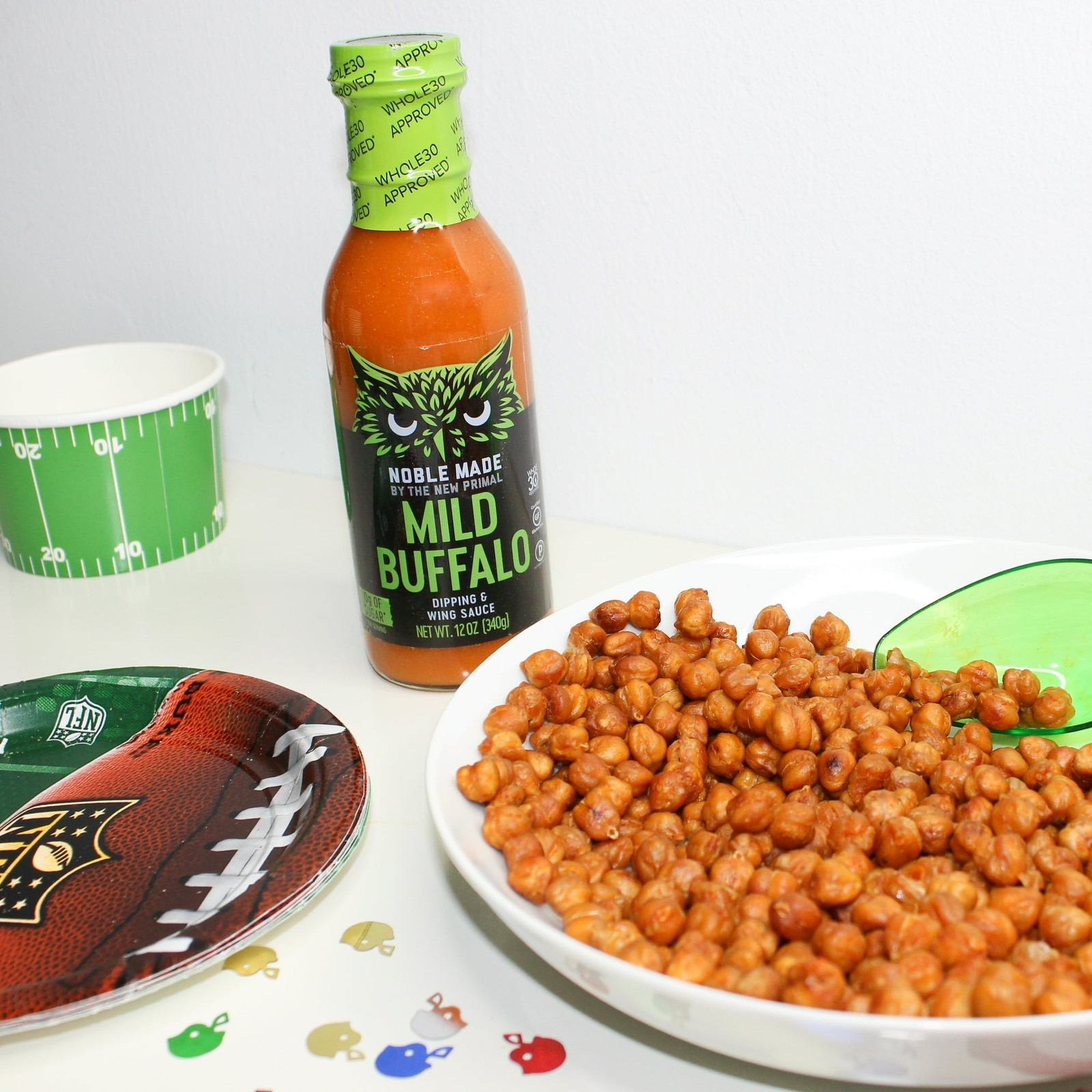 Noble Made by The New Primal Mild Buffalo Dipping Wing Sauce 12 Fl Oz (Pack Of 2) Generally speaking, don't trust a buffalo who claims to be mild. In this case, however, rest easy knowing this sauce won't turn on you. Sure, it's buffalo through and through, but it's been sweetened with just enough pineapple juice to make nice with your peace-seeking palate. MILD BUFFALO SAUCE: Generally speaking, don't trust a buffalo who claims to be mild. In this case, however, rest easy knowing this sauce won't turn on you. Sure, it's buffalo through and through, but it's been sweetened with just enough pineapple juice to make nice with your peace-seeking palate. Three bottles for your pantry, because you will use them up so fast! WHOLE30 APPROVED & PALEO: The New Primal Buffalo sauces are mean and delicious and keeps your meats and veggies - and you - well within your nutrition objectives. No more cobbling together recipes or wasting ingredients. GLUTEN FREE: Each variety receives the stamp of strictest standards to promote a healthy gut and happy gut-check. Because who really needs gluten or genetic modification? Not you. About this item MILD BUFFALO SAUCE: Generally speaking, don't trust a buffalo who claims to be mild. In this case, however, rest easy knowing this sauce won't turn on you. Sure, it's buffalo through and through, but it's been sweetened with just enough pineapple juice to make nice with your peace-seeking palate. Three bottles for your pantry, because you will use them up so fast! WHOLE30 APPROVED & PALEO: The New Primal Buffalo sauces are mean and delicious and keeps your meats and veggies - and you - well within your nutrition objectives. No more cobbling together recipes or wasting ingredients. GLUTEN FREE: Each variety receives the stamp of strictest standards to promote a healthy gut and happy gut-check. Because who really needs gluten or genetic modification? Not you. LOW FAT AND LOW CARB: Our sauces just happen to be low fat, low carb, and Keto friendly! Every flavor is free of refined sugar, gluten, dairy, soy, oil, trans fats, artificial fillers, and preservatives. (You guessed it... you won't miss those, either.) HEALTHY AND DELICIOUS: Turn that bottle around and check out the list of tasty, natural ingredients. You know them, you can pronounce them, and they are already making your mouth water. Ingredients Water, Distilled Vinegar, Cayenne Pepper, Salt, Extra Virgin Olive Oil, Tapioca Starch, Pine Apple Juice Concentrate, Xanthan Gum Nutrition facts Refer to the product label for full dietary information, which may be available as an alternative product image. 24 Servings Per Container Serving Size 1 Tbsp (15 g) Amount per serving Calories 10 Amount per serving % Daily Value* Total Fat 0.5g 1% Saturated Fat 0.0g 0% Trans Fat 0.0g 0% Cholesterol 0.0mg 0% Sodium 370.0mg 16% Total Carbohydrate 1g 0% Dietary Fiber 0.0g 0% Sugars 0.0g 0% Includes Added Sugars 0.0g 0% Protein 0.0g 0% Calcium 2.0mg 0% Potassium 2.0mg 0% Iron 0.0mg 0% Vitamin D 0.0mcg 0%