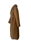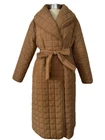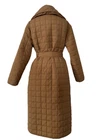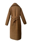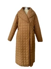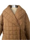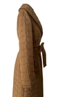 This Nobody's Child Tan Quilted Long Coat is made from 100% recycled polyester, featuring a quilted square pattern and a belted design. The coat has long sleeves and a snap closure with a belt,making it suitable for various occasions such as travel, casual outings, workwear, or business settings. With a lightweight yet warm insulation of polyester, this coat is perfect for autumn, winter, and spring seasons. The size available is S (UK 8-10-12), offering a classic fit for women looking for a stylish and eco-friendly outerwear option. This is in very good condition - please see photos. Label reads Sz S please check measurements: Shoulders 19” Sleeves 22” Bust 22” Waist 20” Total length 43”