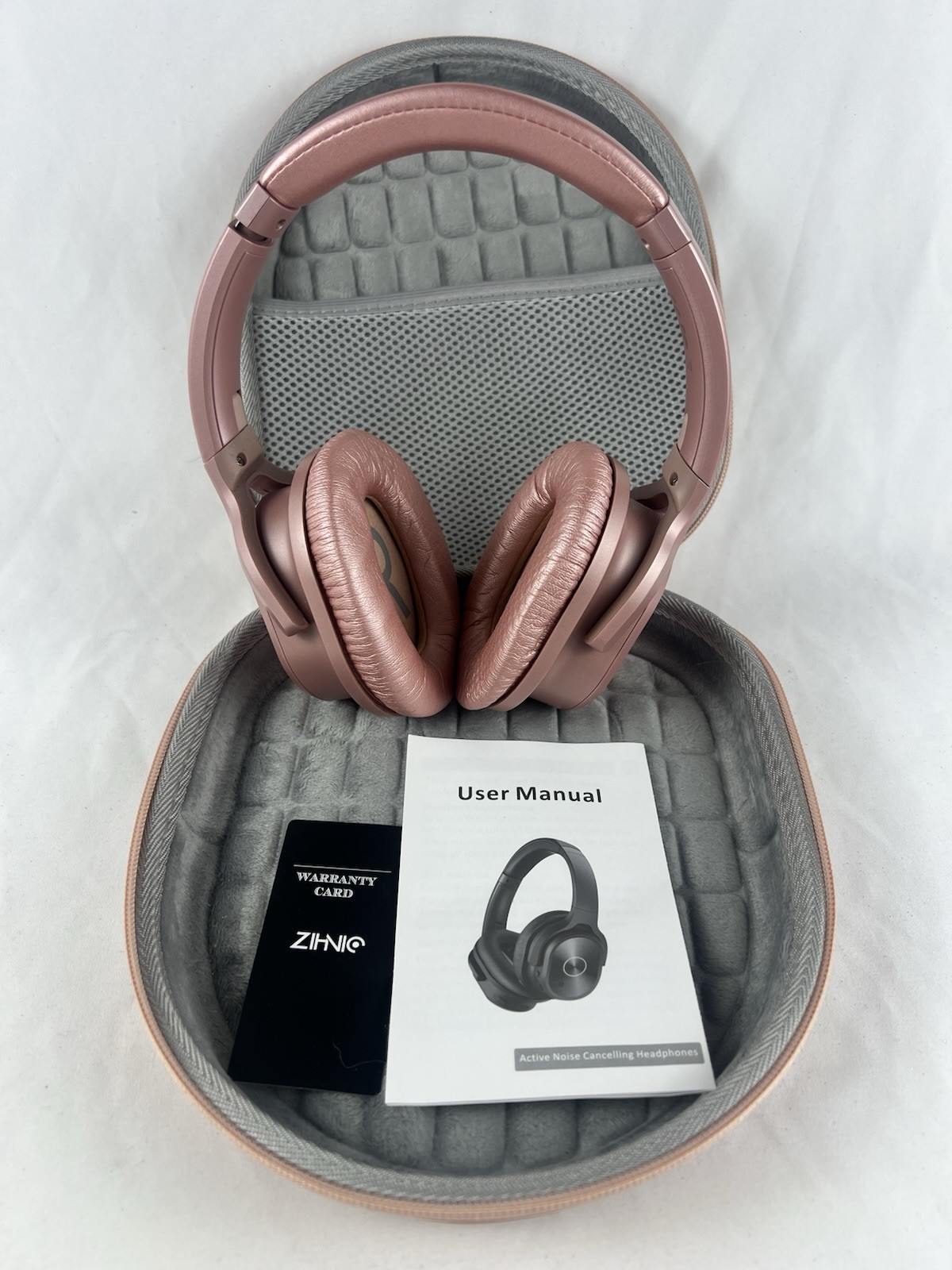 The ZIHNIC Rose Gold Bluetooth Wireless Noise Cancelling Headphones are a stylish and high-quality option for those looking for a premium audio experience. With active noise cancellation technology and an adjustable headband, these over-ear headphones provide a comfortable and immersive listening experience. There’s a very slight indentation on bottom of case as shown in photos and reflected in price. The sleek rose gold color adds a touch of elegance, while the Bluetooth 5.0 wireless technology ensures freedom of movement while on-the-go. Made in China in the 2020s by the reputable brand ZIHNIC, these headphones are a great choice for music lovers seeking both style and functionality.
