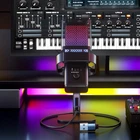 Features: 1. [LB function] return to record PC playback music, you can return to record PC playback music into the recording content 2. [High-fidelity] heart-shaped pickup, recorded sound quality is clearer, using a new microphone core and electronic parts of the overall pickup bottom noise is smaller, more clear vocals 3. [Real-time monitoring] control the recording details, at any time to control the sound monitoring 4. [RGB ambient light] Dazzling atmosphere, colorful lighting system, adjust the color lighting at will 5. [A key mute] to avoid the embarrassment of unexpected things, a light press to mute the microphone Specification: Microphone type: condenser microphone Pointing characteristics: cardioid pointing Signal-to-noise ratio: ≥85dB Rated voltage: 5 Frequency response range: 30Hz-15kHz Package List: 1 * microphone 1 * anti-spray net 1 * data cable 1 * stand 1 * instruction manual