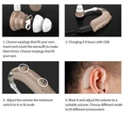 Noise cancelling hearing aid amplifier Bluetooth with rechargeable battery Features: 1.Max sound out put:118±4dB 2.Sound gain:≥32dB±2dB 3.Total harmonic wave distortion:≤7% 4.Frequency range:300-3800MHz 5.Input Noise:≤32dB 6.Voltage:d.c.3.7V 7.Current:≤2mA 8. Full charging about 3 hours 9. Support Bluetooth function 10. Normal working about 45 hours, bluetooth working about 3 hours Packing List: 1 PC or 1 Pair Hosts 2 x USB Charging cables 8 x Earbuds 1 x Brush 1 x English manual 1 x Shockproof case Payment Delivery details Terms of sales About us Contact us Payment We accept PayPal , Google pay , Visa , Amex , Discover Payment. Delivery details We do not ship during weekend nor Public Holiday. Orders will be shipped out in 1 to 4 working days after the payment cleared. Terms of sales If you have any question with your purchase or you do not satisfied with the item,please do not take any action as open case on ebay or paypal before contacting us, you can just fell free to contact with me, 100 % Satisfaction Guaranteed About us Welcome to buy Contact us Please email us for any questions or complaints and we will get back to you within 24 hours (Except Weekend Nor Public Holidays) Battery Lithium battery 60MA Brand Unbranded Charger DC 5V/50MA-1A Charging Type USB charging Country/Region of Manufacture China Current ≤2mA Department Adult Device Size In the Ear (ITE) Features Digital Noise Reduction, Rechargeable, Replaceable Battery Frequency Range 400Hz~3800Hz Input Noise ≤28dB Items Included Hearing Aid Case Manufacturer Warranty Other: See Item Description Max Sound Output 129±4dB Power Source Docking station/ case, Rechargeable Battery Sound Processing Digital To Fit Both Ears Type Hearing Amplifier Working Voltage D.C.3.7V