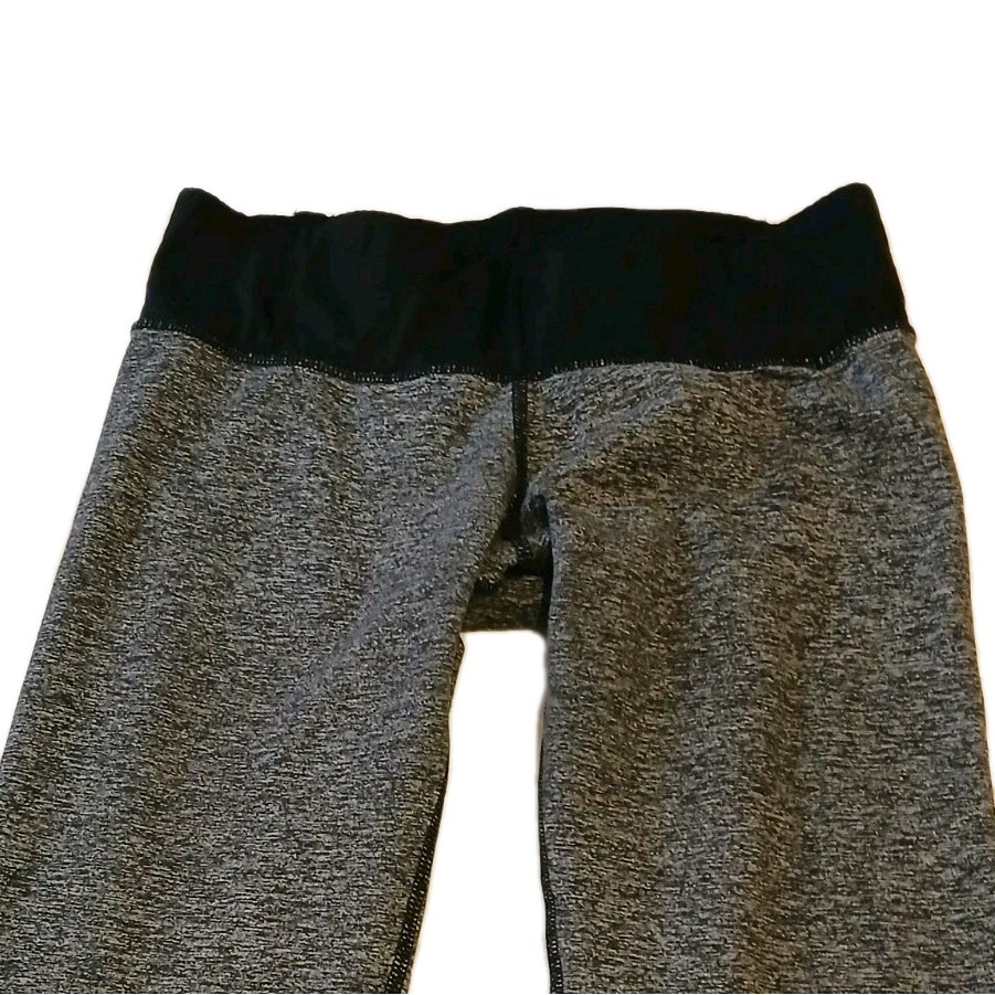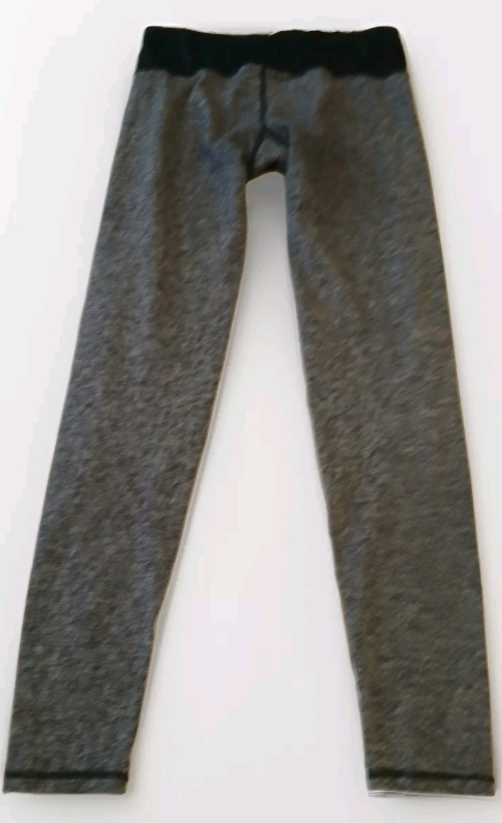 These Noli Yoga leggings in size small feature a stylish gray color with a black waist trim, perfect for women who enjoy activewear for yoga. The compression area is focused on the waist to provide support and a secure fit during yoga sessions. The brand Noli is known for its high-quality yoga apparel, making these leggings a fashionable and functional choice for yoga enthusiasts looking for comfort and style in their activewear.