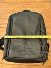 The Nomatic Travel Backpack is a versatile and practical choice for various occasions, from casual outings to work or business travel. With a sleek solid black color and water-resistant nylon material, this medium-sized backpack features a top handle for easy carrying and a convenient zip closure. The interior is lined with a durable canvas fabric and includes inner dividers, pockets, and a laptop sleeve for organized storage. Additionally, it is equipped with RFID blocking technology, making it a secure choice for travel. Perfect for those who value both style and functionality in their accessories. Despite the outer flaws, inside is immaculate