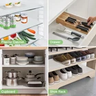【Anti Oil& Waterproof】These drawer liners are waterproof and dust-proof which keeps belongings in your kitchen cabinet, fridge and drawer organized and protected from grease and spills. You can easily wipe up the mess with a mild soap and sponge or rinse them directly under water. 【Non-Adhesive& Strong Grip】The kitchen shelf liner is a durable non adhesive liner designed to stay firmly in place on shelves, drawers and cabinets; will also help keep your items in place; they help to prevent dishware and other fragile items from shifting; designed to help reduce slipping and bunching in your drawers and cabinets 【Variable size】We offer a variety of different width sizes, you can choose according to your needs. If you can't use ready-made sizes directly, don't worry. A pair of the most common scissors can help you cut any size you want easily, and the corners will be very smooth without any warping 【Widely Used】The plastic clear liners are ideal for use in kitchen cabinets, drawer, table, cupboard, refrigerator, shoe holder, wire shelves, pantries, laundry rooms, filing cabinets and workspaces, also serve as coasters and dining mat for organizing and protecting small items from damage or scratches. A good choice for organizing spaces and homes. 【Durable and Safe Material】The cabinet mat is made of premium quality EVA-based material that is extra durable, safe to use. Could be contact with vegetable and fruit directly. Eco-friendly necessities for home and kitchen. They won't rip or tear when stored with sharp utensils or heavy objects. Product Description