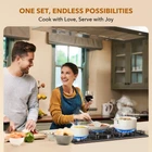 11-Piece Pots and Pans Set Healthy Nonstick Ceramic: This cookware set delivers 5X superior nonstick performance and is made from 100% Free PTFE, PFOA, PFAS, Cadmium, Lead materials for safe, long-lasting use. 30% Thicker & Built to Last: The pot body is 30% thicker, featuring a reinforced durable structure that resists breaking and wear, ensuring long-term reliability. 11-Piece Cookware Set Includes: 8.5-inch Frying Pan, 10-inch Frying Pan, 1.5QT Saucepan with Lid, 4QT Sauté Pan with Lid, 4.3QT Casserole Pot with Lid, and 3 pot protectors. Oven Safe: Seamlessly transition from stovetop to oven for versatile cooking. The durable nonstick coating and stainless steel handles withstand oven temperatures up to 500°F. Easy to Clean: The nonstick surface ensures quick cleanup—just wipe with a paper towel or rinse with water. Durable, stain-resistant, and dishwasher safe. Perfect for Induction & All Stovetops: The high-magnetic stainless steel base ensures fast, even heating on induction, gas, electric, and ceramic cooktops. Worry-Free Guarantee: We stand behind the quality of our pots and pans set. If you have any questions or concerns, simply contact our customer service team for a hassle-free solution—your satisfaction is our priority.