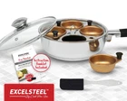 Looking to create a deliciously healthy and nutritious breakfast or brunch? Look no further than our Excel Steel 4 cup egg poacher. Part of our best selling egg poacher selection, This egg poacher will take the strain out of poaching the perfect egg. You’ll be able to impress your friends or family with brunch or breakfast get together. Create a variety of breakfast meals that are healthy and nutritious, such as as eggs benedict, toasted English ham muffin, or a poached egg on toast. The encapsulated base creates an even heat distribution while cooking, while also being induction stovetop ready. Ensure a comfortable grip and keep your hands protected with Excel Steel stay cool silicone, riveted handle for durable long lasting use. Includes a Tempered glass lid so you can keep your eye on the cooking. Use the 7. 5” fry pan to get more done in the kitchen. Designed with 18/10 stainless steel to ensure durability and long-lasting use. All parts included are dishwasher safe. Easy to use - take the strain out of poaching the perfect egg for breakfast or brunch with ’s bestseller 4 Cup egg poacher! Poaching eggs are made simple with the included instructions. Durable & long lasting - designed with an encapsulated base, A riveted handle, and rust-resistant Stainless steel to ensure durability, reliability, and everyday long-lasting use in the kitchen. Delicious breakfast & brunch - impress friends and family with a wonderfully cooked weekend brunch! Create delicious meals such as eggs benedict, Toasted English ham muffin, or a light morning snack. Multi-purpose use - doubles as a regular fry pan so you can be more efficient and versatile in the kitchen. Get back to cooking to create a wider selection of foods without needing a 2nd pan! Easy cleanup - after creating an appetizing meal, cleanup is made is easy with the included non-stick egg Cups. All parts included are dishwasher safe! Free silicone spatula- included is one free silicone spatula so that you can start creating delicious meals as soon as your egg poacher arrives!