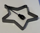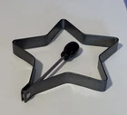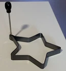 Non-Stick Metal Star Shaped Pancake / Egg Mold with Folding Handle with Wood Top - approximately 4.5" across with handle that stands upright almost 4.25” when not folded down This pre-owned piece would make a fun addition to your kitchen and cooking. The handle folds down for easy space limited storage. Please review all pictures carefully as they are part of the description. Questions are welcome.
