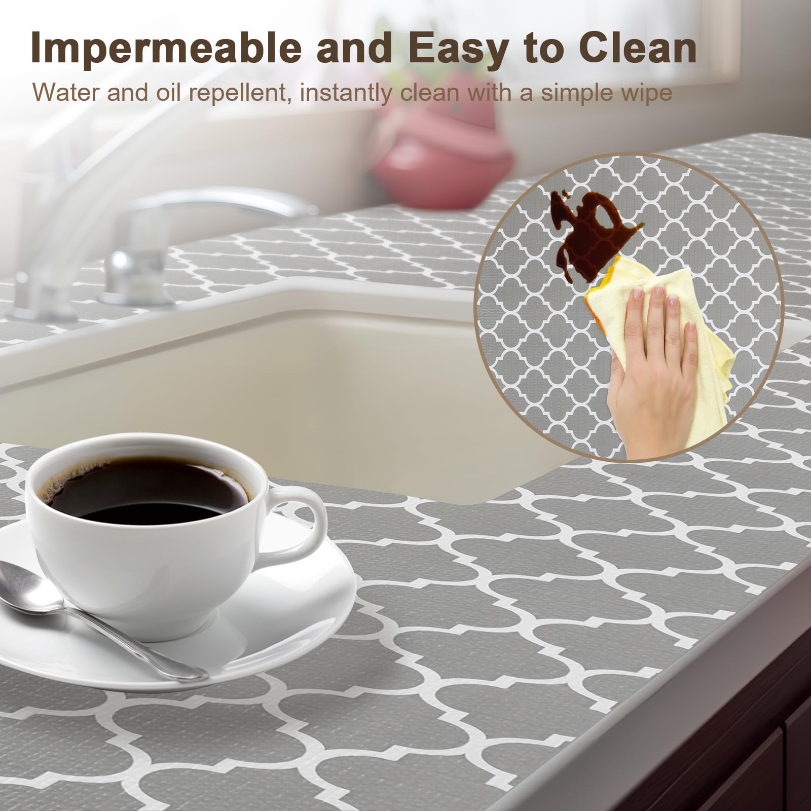 Non-Adhesive Drawer and Shelf Liner 12IN x 30FT,Non Slip Cabinet and Cupboard Liner, Kitchen Cabinet Liners for Shelves, Waterproof Drawer Shelf Liners for Cabinets/Bathroom Cupboard,Gray Quatrefoil 【NON-SLIP STRONG GRIP】Drawer liner is designed with double-sided non-slip design. Effectively prevent dishes and other fragile items in drawers and cabinets from shifting and sliding; The bottom mesh design can firmly grip the drawer or cabinet surface to prevent wrinkles. 【EASY TO CLEAN】Cupboard liner are made of water and oil repellent material, providing excellent protection for drawers and shelves. Easy to clean, wipe gently to restore as new. 【EASY TO CUT】Shelf liner non slip is easy to cut and suitable for all kinds of spaces Whether it's the kitchen, bathroom, study or bedroom, this cabinet shelf liner is a perfect match. Its design makes it suitable for all occasions and helps you keep your space neat and organized. 【NON-ADHESIVE】Our shelf liners for kitchen cabinets non-adhesive, avoiding the damage that glue can cause to cabinet, drawer, table and shelf surfaces. 【WITHOUT CURLING EDGES】Our paper for cabinets are made of soft material and won't curl at the edges, so they can be used in any space, such as kitchen cabinets, shelves, pantries, laundry rooms and workspaces.
