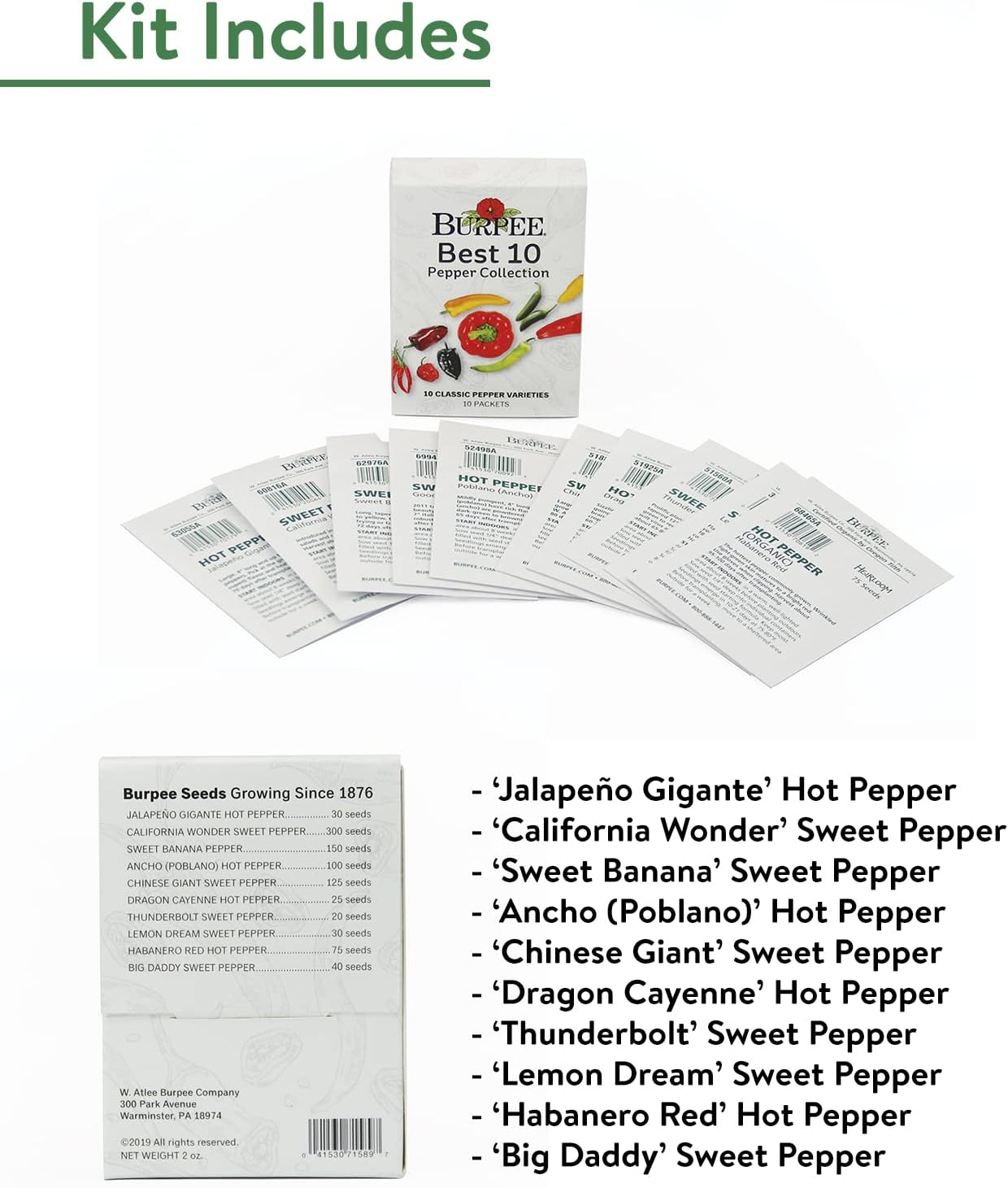 Store New Arrivals Add to Favorite View Feedback Contact Best Collection | 10 Packets of Non-Gmo Fresh Mix of Hot Pepper & Sweet Varieties | Jalapeno, Bell Pepper Seeds & More, Seeds for Planting Description Item model number Best 10 Peppers Collection | Unit Count 1.0 Count Plant or Animal Product Type Vegetable Color Best 10 Pepper Collection Product Dimensions 1 x 3 x 6 inches Country of Origin USA USDA Hardiness Zone 3 Item Weight 1.44 ounces Indoor/Outdoor Usage Outdoor, Indoor Moisture Needs Moderate Watering Sunlight Exposure Full Sun Material Feature GMO Free Number of Pieces 10 Expected Blooming Period Summer Delicious Pepper Varieties: Grow A Tasty Mix Of Peppers, Including Our Favorite Sweet And Hot Pepper Varieties; This Collection Of 10 Seed Packets Has Been Handpicked By Our Expert Team To Provide The Most Complete Pepper Gardening Experience Pick Your Flavor: The Best 10 Collection Includes A Gourmet Selection Of Bell Peppers, Jalapenos, Hot, Sweet, And Cayenne Peppers! Add Jalapenos To Salsas, Or Stuff Bell Peppers For Roasting; Give Collection Boxes As Gardening Gifts Sowing Made Simple: Get A Successful Start On Your Pepper Garden By Following The Planting Instructions Included On Each Variety's Seed Packet; Peppers Should Be Started Indoors 8-10 Weeks Before Your Area's Last Frost Date Non-Gmo Seed: Burpee Offers The Highest Quality, Non-Gmo Seeds Hand-Picked By Expert Horticulturalists For Growing In The Home Garden; Burpee Has Been Loved By Gardens And Trusted By Gardeners For Over 140 Years Since 1876: Generations of customers have trusted Burpee to deliver the highest quality products and service; Gardeners rely on Burpee for accurate plant information and how-to tips that make gardening easier and more successful; Let’s grow together CLASSIC VARIETIES: Get the best of our best with Burpee’s “Best 10” Pepper Collection. Each variety is handpicked by our expert team here at Burpee to provide the most complete pepper gardening experience. ABOUT US We offer the best prices around on high quality products. Our E-store includes media such as books, movies, music and games while offering electronics, toys, sporting apparel, clothing, tools, general home, garden items and more. SHIPPING We are always working hard to ensure your package arrives as soon as possible. Please understand that some factors like weather, high postal traffic, and the performance of shipping companies are outside of our control. We offer free shipping to the lower 48 states and ship within 2 business days of payment, usually sooner. We do not accept P.O. Boxes. Please provide a physical address. For shipping outside of the continental USA, we only use eBay's Global Shipping Program.The item is shipped to KY and then sent to the rest of the world. International customers are responsible for all duties and taxes. Continue to check out in order to calculate costs for shipping the item to your country. Messages regarding eBay's Global Shipping Program MUST be directed at eBay EXCLUSIVELY. RETURNS We offer a 30-Day Return Policy on items which you are not completely satisfied with. You have the option for a full-refund or an exchange of the item. No returns are available on items shipped outside of the USA. PAYMENT We accept PayPal. CONTACT US This page content is yet to come Please ad us to your favorite seller and visit again later Thank You CUSTOMER SATISFACTION We try our very best to make sure every customer is completely satisfied. If there's a problem, message us! We're happy to help. WE ACCEPT Copyright © 2021 AutoDS. | All Rights Reserved