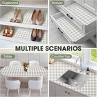 Non-adhesive Strong Grip: Shelf Liner is a double-sided, non-adhesive design, keeps items in your kitchen bathroom cabinets, drawers and shelves in place Waterproof & Easy to Clean: With the water and oil resistant, our drawer liner providing the ultimate protection for furniture against stains, easy to wipe down, keep shelves and cabinets clean and dry Easy to Cut & Use: The cabinet liner can be cut into different shapes, easy to use and install, make your shelf liner style with ALIUNI lining Thick & Durable: This drawer and shelf liner is made of top quality PVC material, BPA free, thick and durable to protect your furniture, order in your living spaces No Edge Curling Non-Slip: Our kitchen drawer liner has non-curling edges to ensure a neat and attractive finish for any surface, the perfect solution for organizing your shelves, drawers, and under sink cabinets