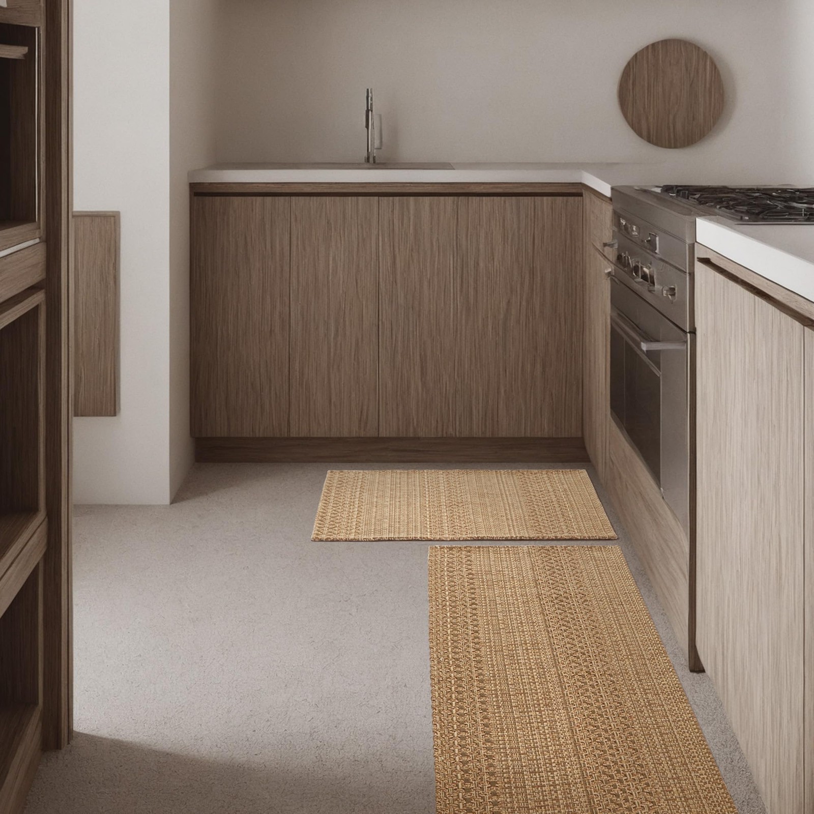 Experience the blend of comfort and practicality with our machine washable area rugs, crafted for modern living. Ultra-soft yet built to last, these floor mats for house spaces feature an interlocking weave design that withstands daily wear in high-traffic zones like living rooms, dining areas, and especially as kitchen rugs non slip where spills happen. Hassle-free maintenance keeps them looking fresh: Simply vacuum regularly to eliminate debris. When deeper cleaning is needed, our non-slip rug collection is fully machine-washable. Follow care instructions for best results: Use mild detergent only Avoid bleach/fabric softeners Machine dry low or air dry (no heat) Friendly for pet owners and busy households, these machine washable area rugs combine stain resistance with a secure non-slip backing, ensuring safety on hard floors. Upgrade your home's style and functionality with floor mats for house that simplify cleaning without sacrificing comfort or durability. Soft and Well Designed: This non-slip kitchen rugs exudes the elegance of vintage design with its harmonious colour palette paired with an intricate weave. The rug is made from high quality, low-pile soft fibres for a gently cushioned feel underfoot. The rug is a clever blend of classic, modern, and bohemian elements, with both striking design and luxuriously soft texture. The pattern and colours match the picture vividly, with consistent colour throughout the rug Premium Quality and Durable: Our kitchen rugs protect your floors from scratches, scuffs and spills. The cushioned surface also prevents sharp cutlery or fragile bowls from falling onto the floor. The soft texture of the kitchen mat provides an excellent protective layer Machine Washable: To maintain the cleanliness of your hallway rug, you can vacuum or shake it regularly. When washing, use the delicate wash programme of your washing machine and then air dry to prolong its life. Avoid using bleach. Tip: Cotton rugs may shrink or wrinkle after washing; if necessary, iron at low temperature to restore shape Multiple Sizes & Uses: kitchen rugs Size 20"x30"+20"x48" 2 Pieces Set, Widely used for home decor, indoor front doors, porches, living rooms, hallways, and any high traffic spaces. The surface features a sturdy and soft woven construction that relieves foot fatigue About Us:specialises in designing and producing high quality, comfortable rugs that add beauty to your life and make life as you want it to be. If you encounter any problems before or after purchase, please feel free to contact us, we will solve the problem for you at the first time