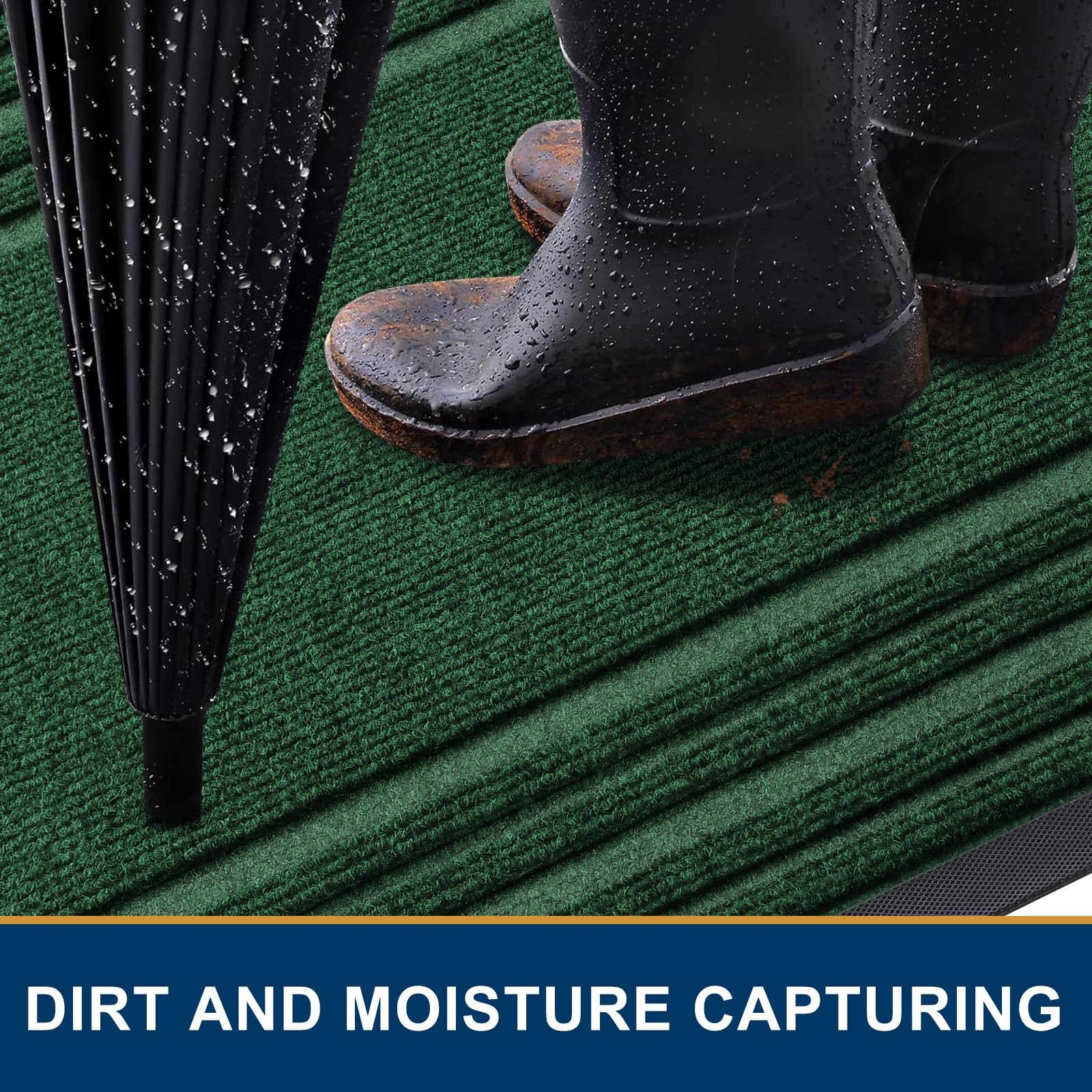 natural rubber door mat is made from reliable natural rubber, ensuring durability and nice slip resistance. The surface features a framed pattern design that effectively captures and scrapes off dirt and debris from shoes, keeping indoor areas clean. Available in multiple colors and sizes, this doormat is suitable for various residential and commercial settings, such as entryways, hallways, patios, and office spaces. Its design is both functional and aesthetically pleasing, adding a touch of simplicity and modernity to any space. Gather Debris and Wetness: door mat features a geometry groove design that effectively gather grime, dust, gravel, mud, sand, grass, or any other messy debris, stopping them from entering your home. The surface of the front door mat is crafted from beautifully woven polyester fabric that absorbs wetness, while the sturdy oblique rubber edge ensures that water does not accumulate on rainy and snowy days, keeping your home dry and clean Natural Rubber Backing: heavy duty outdoor mat features a long lasting natural rubber backing that enhances stability when entering or exiting your home. Additionally, the rubber backing effectively keeps the door rug in place without damaging the floor. WARNING: Place mat on CLEAN DRY SMOOTH FLOOR only. Water under the mat can cause it to slip. Keep bottom of mat dry. Before using, test with foot to ensure it doesn't move Sturdy and Long-Lasting: outdoor mats for front doors are crafted for exceptional strength and longevity. Designed to withstand the elements, these mats remain effective and visually appealing through a variety of weather conditions, including intense sunlight, heavy rain, and snow. Their robust construction ensures they continue to perform well over time, making them a reliable choice for any entrance Easy to Clean: Cleaning the floor mats is a breeze. Simply use a vacuum cleaner, sweep with a broom, or pat the backing and shake off loose dirt. For a more thorough clean, rinse the doormat with a hose and allow it to fully air dry Versatile for Various Occasions: Versatile for both indoor and outdoor use, the rubber doormat is suitable for front doors, side doors, walkways, entrances, halls, garages, patios, barns, and other high-traffic areas. With its heavy and strong materials, soft and flexible construction, and simple and stylish design, it complements any decoration style effortlessly