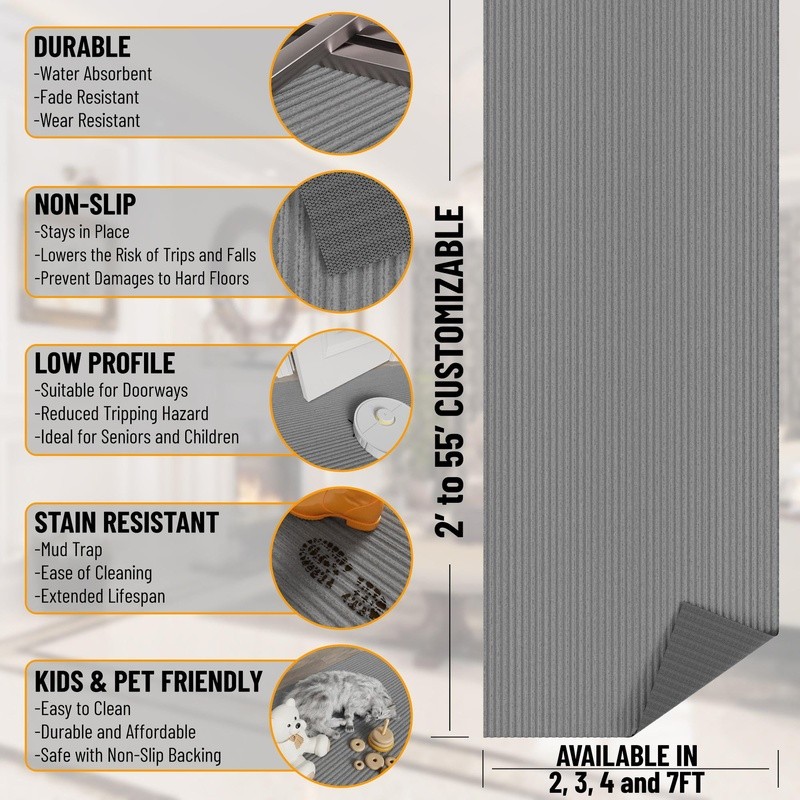 Cozy Electric Heating Blanket Faux Fur Soft Warm Throw Home Office Use 44.98 USD Free shipping 10 Piece Glass Mixing Bowls Set W/ Lids Food Storage Prep Serving Dish New 21.27 USD 22.87 USD Free shipping 7% off Soft Heated Blanket Twin Sherpa Electric Auto Off 5 Heat Settings Comfortable US 50.12 USD 53.89 USD Free shipping 7% off Electric Heated Blanket Soft Warm Auto-Off 5 Heat Settings Safe Eco-Friendly New 47.49 USD Free shipping Wet Dog Food Chopped Ground Dinner Beef Canned Adult Nutrition 4 Pack 22oz Cans 16.27 USD 17.5 USD Free shipping 7% off Professional Handheld Seed Spreader Bag Seeder 25lbs Capacity W/ Waterproof Bag 57.01 USD 61.3 USD Free shipping 7% off Prismatic Iridescent Christmas Snowflake LED Decoration Kids Room Indoor New 31.51 USD 33.88 USD Free shipping 7% off Aluminum Threshold Extender Easy Install Durable Sill Extension Hack Saw Cut New 26.59 USD 28.59 USD Free shipping 7% off Adjustable Steel Closet Rod Multiuse Organizer Clothes Hangers Storage Solutions 18.56 USD 19.96 USD Free shipping 7% off Foldable Luggage Rack Suitcase Stand Metal Holder Easy Assembly Guest Room Hotel 47.56 USD 51.14 USD Free shipping 7% off Upholstery Extractor Wand Carpet Cleaning Auto Detailing Vacuum Hose Tool New 48.36 USD 52.0 USD Free shipping 7% off Organic Split Pea Soup Light Sodium Vegan Canned Soup 2 Pack Healthy Meal New 11.89 USD 12.78 USD Free shipping 7% off Our Scrabe Rib Collection boasts a wide array of rugs, mats, and stair treads ranging from solid colors to unique prints and come in a wide range of custom sizes. Made in India, these Polyester TPR rubber back rugs/stair treads will provide style throughout your home while also keeping your family safe with its non-slip rubber backing. Our sleek and functional ultra thin pile will help you place these rugs in areas where it would otherwise be difficult. These rugs are made from quality materials that are family and pet friendly and perfect for high traffic areas of your home such as the living room, patio, kitchen, and hallways! Here at , our mission is to deliver the highest quality rugs/stair treads! [KEY ATTRIBUTES]: Size: 2'7" x 21' (3' x 21') | Thickness: 0.2 in. | Color: Soft Ribbed [ULTRA THIN]: An ultra thin pile thickness of 0.2 inches offers ideal functionality that is perfect for busy areas, underneath furniture, and in entryways as it will not obstruct doorways. [NONSLIP & STAIN RESISTANT]: Made in India with high quality and stain resistant Polyester material. The rubber backing minimizes slipping. To ensure comfort and additional grip please purchase double sided rug tape. [TRENDY STYLE]: This contemporary solid design custom size utility runner rug features a color background that will enhance the look of your home. Its timeless design can be integrated into a variety of home décor styles. [KID & PET FRIENDLY]: Safe for everyday high foot traffic areas and more resistant to life’s unpredictable messes from kid or pet activity. [EASY CARE]: Stress free cleaning includes regular vacuuming (no brushes/rollers) and gently spot cleaning out minor stains with mild detergent or carpet cleaner. Creases and curling should flatten with 5-7 days of regular use. Hose washing is also applicable, simply wash down with a hose and leave to dry! To expedite this process, reverse roll the corner with the crease and gently apply pressure. [CUSTOMIZABLE]: These rugs are easy to cut into any size to fit your exact measurements. Cut them to your desired size and add the finishing touches to your hallway, entryway, garage, office, living room, patio, deck, finished basement, and laundry room. [TRUSTED BRAND]: Quality rugs made for over 20 years. Founded with the aspiration to embellish indoor and outdoor spaces. aspires to provide trendy rugs while always meeting customer needs. [SEE MORE OPTIONS]: / Ribbed / Ribbed Brown/ Ribbed Hobnail You may also like Freestanding Towel Rack Dual Tier Stainless Steel T-Shape Bathroom Holder New 74.06 USD 79.63 USD Free shipping 7% off 12 IN 1 Power Strip Surge Protector W/ USB C Ports 10ft Flat Extension Cord 31.51 USD 33.88 USD Free shipping 7% off Eco-Friendly Compostable Plates Heavy-Duty Biodegradable Microwave Safe New 33.09 USD 35.58 USD Free shipping 7% off 5-Cube Storage Organizer Bookcase Open Back Modern Home Office Display Shelves 90.94 USD 97.79 USD Free shipping 7% off 3 Prong Grounded Power Cord 16AWG Indoor Extension Cord Weatherproof Saver New 18.95 USD 20.38 USD Free shipping 7% off Space Saving Wall Gun Rack Parallel Design Durable Steel Gun Storage Organizer 31.3 USD 33.66 USD Free shipping 7% off Nylon 2x4 Deck Railing Brackets 40pcs Heavy Duty Rustproof Screws Outdoor Use 71.54 USD 76.93 USD Free shipping 7% off Nitrogen Regulator HVAC Purging Pressure Tests W/ 6.56ft Hose CGA580 Fitting New 48.54 USD 52.19 USD Free shipping 7% off 12-Piece Glass Dinnerware Set Service 4 Durable Microwave Dishwasher Safe New 48.86 USD 52.54 USD Free shipping 7% off Hammock Chair Cotton Rope W/ Cushion Portable Hanging Seat Adults & Kids New 44.04 USD 47.36 USD Free shipping 7% off Swivel Plant Hook Outdoor Garden Bird Feeders Hanging Baskets Wind Chimes 2PCS 53.7 USD 57.74 USD Free shipping 7% off Queen Alloy Steel Bed Frame No Box Spring Needed Sturdy Storage Easy Assembly US 91.64 USD 98.54 USD Free shipping 7% off