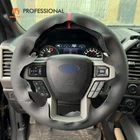 eBay Hand Stitch Genuine Leather Steering Wheel Cover for Ford F-150 Raptor ONE Car ONE Template Factory buy brand new steering wheels from all over the world, to make the templates which could 100% fit the corresponding car model. Personalized customization Many colors of thread and material for choose to customize. According to the colors and materials you could customize a new style cover. Multiple protection High quality synthetic suede guarantees a good grip while driving. With 100% fit Mewant cover, it won’t slip while driving. The Original Steering Wheel: NOTICE This cover Suitable car model: for Ford F-150 Raptor 2015-2020 Please compare your steering wheel with ours carefully before order. If you are not sure, please send us a picture of yours to check the fitness! Suitable car model name and launch year are just a reference, different countries have different model name and launch time, so please pay attention to the steering wheel picture above, make sure they are the same , if not sure, feel free to contact us. Default design: Design elements: A: Red Center Top Stripe B+D: Black Smooth Genuine Leather C: Black Perforated Genuine Leather E: Black Thread If you want to change the material or color, please contact our customer service when you order. Features * Increased Safety :High quality leather, super soft & smooth , non-slip & durable. it provides great grip on the steering wheel, massage your palm and relieve drive fatigue , bring you a great touch and feel . * Top Quality: delicate workmanship, super technology and flat sewing stitches, The steering wheel gloves are the perfect way to transform the look of your vehicles interior while protecting your original steering wheel at the same time from wear and tear. Self-installation Needed: Our steering wheel covers need to stitch by yourselves, the installation tools, video and instructions were provided to assistant, please do NOT remove the original leather before the installation, or it will not fit. Attachment:Needle,thread,double sided tape,yellow small blade ,