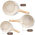 Nonstick Frying Pan Set - Granite Induction Pans for Cooking Omelette Non-Stick Cookware Set, Healthy Kitchen Skillet Non Sticking Stone Pot and Pan Set (8", 9.5" & 11") Beige Healthy Nonstick Frying Pan Set: The skillet set includes an 8" frying pan, a 9.5" frying pan and an 11" frying pan. Smokeless, green and healthy, very durable surface, great non-stick effect, ideal for using on low to medium heat. The stylish cookware set meets all your kitchen and family needs. Safety Non-Stick Granite Coating: The nonstick cooking set is made with a stone-derived nonstick coating inside out to deliver unprecedented nonstick performance - everything just slides right off with less oil & cleans up easily. The natural mineral nonstick coating is ultra-durable while remaining 100% free of PFOA, PTFA, lead, and cadmium. Compatible Induction Bottom: The granite omelette pans are made of premium aluminum alloy material combined with a magnetized base that allows for rapid heat transfer and long-time use, saves energy and time, satisfying cookware like induction, gas, ceramic, electric, halogen & solid fuel cookers. Not suitable for Oven. Unique & Convenient Design: The nonstick granite pans for cooking make it easy to cook food that the whole family will love. Break-resistant & does not warp, conducts heats quickly & evenly, 4.6 mm thicken induction compatible bottom provides a stable heat distribution during cooking, rapidly heating up, saves time and energy. The heat-resistant and anti-slip Ergonomic knob and handle are nice to grip, easy to maneuver, safe and anti-scald. Excellent After-Sale Service: The non-stick frying pan set has 100% passed the quality tests before they leave the factory! If you receive this frying pan with any damage or if it malfunctions in any way, please feel free to contact our service team directly for any questions. Shipping We offer FREE shipping on all orders! We use a selection of shipping services such as UPS, FedEx, USPS etc. We only ship to the lower 48 states, no APO/FPO addresses or PO Boxes allowed. Local pickups and combined shipping options are not provided at this time. Return You can return a product for up to 30 days from the date you purchased it. Any product you return must be in the same condition you received it and in the original packaging. Please keep the receipt. Payment We accept payment by any of the following methods: PayPal Please pay as soon as possible after winning an auction, as that will allow us to post your item to you sooner! Feedback Customer satisfaction is very important to us. If you have any problem with your order, please contact us and we will do our best to make you satisfied. Contact Us If you have any queries, please contact us via ebay. We usually respond within 24 hours on weekdays. Please visit our eBay store to check out other items for sale! Thank you for shopping at our store.
