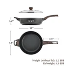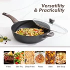 Black Nonstick Frying Pan, 12 Inch Large Skillet Pan, Induction Cookware, 5Qt Non Stick Saute Pan with Lid, Deep Fry Pan, Non Toxic Cooking Pan with Helper Handle, Healthy, PFOA PFOS APEO Free 【Suitable For All Stoves】- High magnetic conductive stainless steel base allows the deep frying pan skillet to work on all cooktops, Induction compatible. The core of the saute pan is die cast aluminum, which is durable and heats up quickly and evenly.Oven safe.【Deeper Depth for More Cooking Options】- Size: 12" diameter, 3.2" deep, 5 Qt capacity.This saute pan is deep and large enough for saute, stirfry, boil, shallow fry & deep fry.【Stay Cool Woodgrain Handle & See Through Lid】- The non-stick pan has a wood grain bakelite handle, which is comfortable to grip and ergonomic, and keeps it cool during cooking.The see through glass lid allows you to check cooking progress while locking in flavor.SGS approved. APEO&PFOA free, smokeless & less oil, safe & healthy. HEALTHY SKILLET - Switzerland ILAG nonstick surface. Free of PFOA, PFOS, lead, cadmium and other toxic materials that can leach into food, safe & healthy. SUPER NONSTICK - The surface of the saute pan with lid is smooth and super nonstick, pancakes just slide right off the pan effortless. Only less oil is needed for cooking, for a healthy, low-fat diet. INDUCTION COMPATIBLE - The nonstick deep frying pan is made of heavy-duty cast aluminum that won't warp. Its induction base is suitable for all stovetops, including induction cooktop, and it heats fast and evenly. HEAT RESISTANT HANDLE & TEMPERED GLASS LID - The bakelite handle of the ceramic non toxic frying pan with lid features woodgrain design, and it is comfortable to grip and stays cool while cooking. The explosion-proof glass lid prevents splashing and ensures maximum visibility. EASY TO CLEAN - The nonstick surface and no rivets design make the non toxic frying pan with lid easy to clean in seconds with a towel, soap and warm water. Recommend hand wash to extend the non stick surface life. MULTIFUNCTIONAL PAN - This deep skillet offers a variety of cooking options such as sautéing, stir-frying, searing, boiling, simmering, blanching, braising, deep-frying, stewing. One pan can be used in multiple ways.
