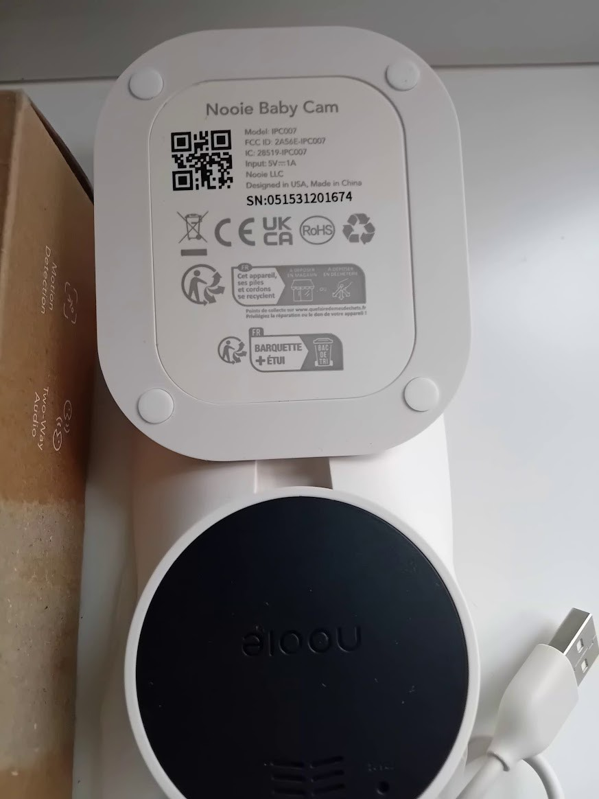 Nooie Indoor Cam 1080p Smart Baby Monitor Please Note This auction is for camera unit and charger with charger cable only, items showing in my pictures are what you will receive Nooie IPC007-1080P indoor surveillance camera, suitable for use as a smart baby monitor or pet camera. Brand new and sealed. Features include; - 2K resolution - Motion detection - Two way audio - Night vision - Crying detection - Smart device compatibility (Hey Google / Alexa)