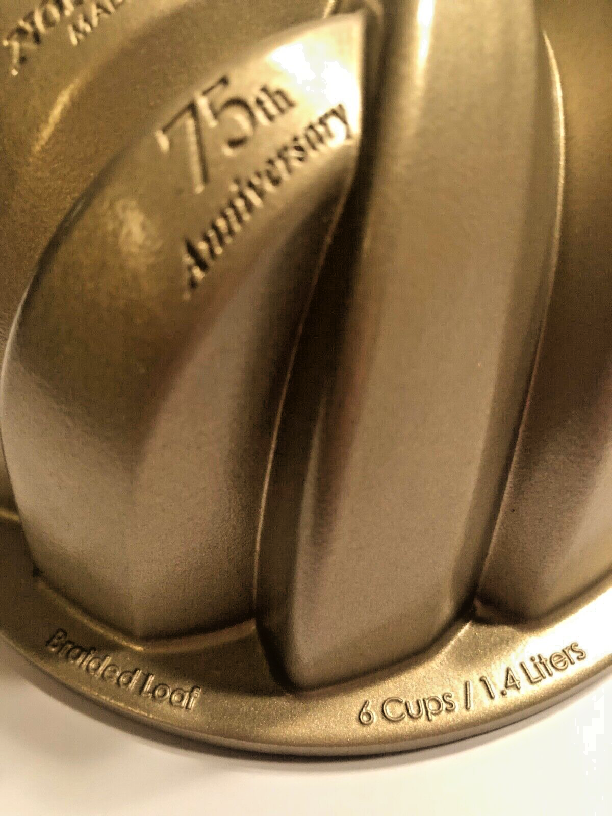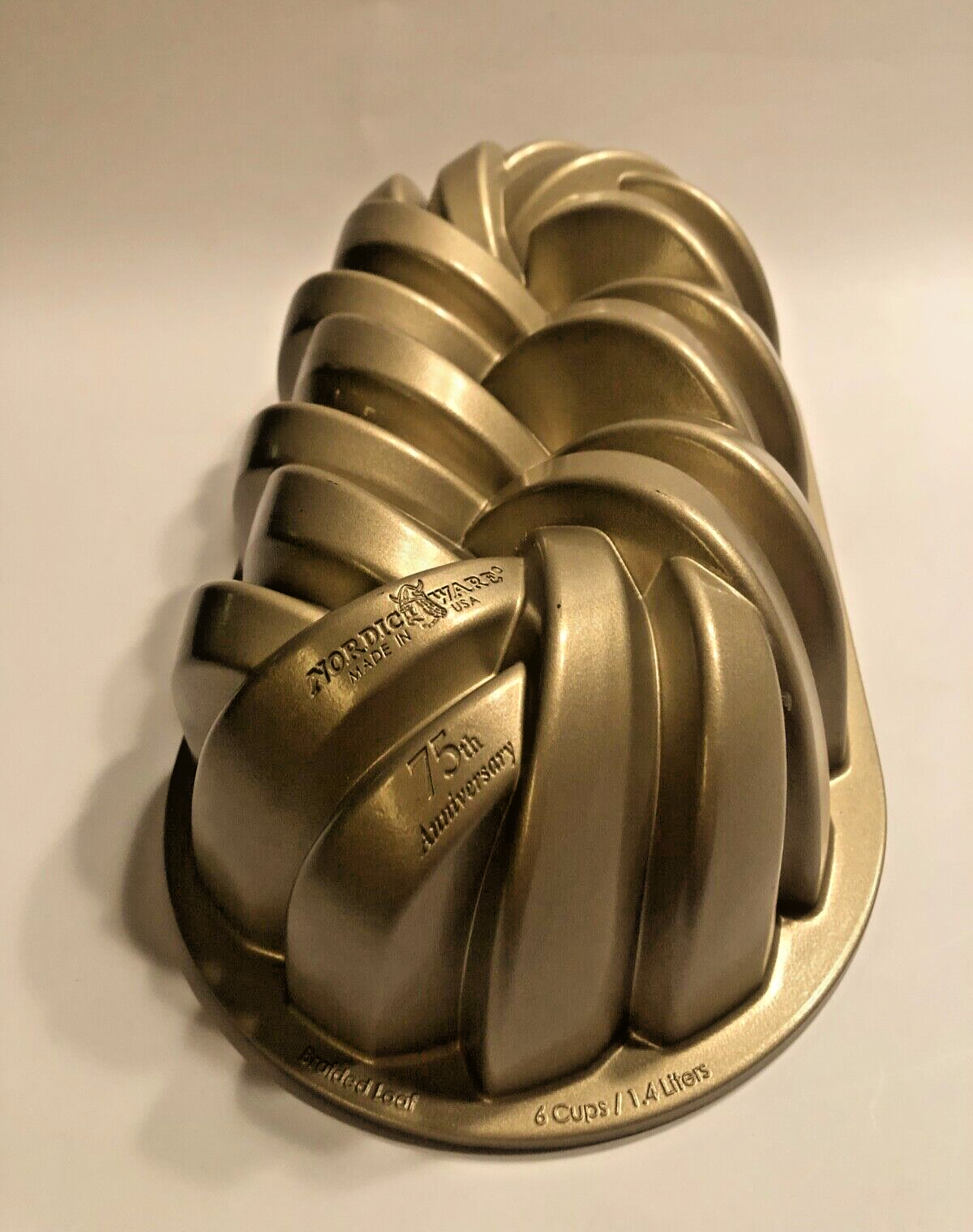 Elevate your baking experience with the Nordic Ware 75th Anniversary Braided Loaf Pan, a premium bakeware designed for both beauty and functionality. Cast in durable aluminum and finished with a PFOA-free gold-tone nonstick coating, this loaf pan boasts a unique braid shape that adds an elegant touch to your creations. The 6-cup capacity is perfect for a range of breads, loaves, and savory dishes.Crafted with care in the United States, this pan features an easy release and easy clean surface, ensuring your baking process is as hassle-free as possible. Hand wash only care is recommended to maintain its exquisite design. Whether you're a seasoned baker or a newcomer to the kitchen, this Nordic Ware loaf pan is a must-have for your collection.
