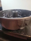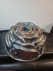 The Nordic Ware 9" Rose Bud Bundt Cake Mold is a platinum-colored baking mold made of cast aluminum. With a capacity of 10 cups, it features a non-stick surface coating and a unique rose shape design. Perfect for creating beautiful cakes or gelatin desserts, this item is 9 inches in length, 9 inches in width, and 4 inches in height. Ideal for Valentine's Day or romantic-themed baking.
