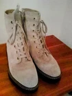 The Nordstrom Women's Leather Upper water Resistant Zip Up combat styled Boots are stylish and functional footwear designed for outdoor activities. Featuring an almond toe shape, zip closure, and medium calf width, these boots have a low block heel for added comfort. The leather upper and water-resistant feature make them ideal for winter, fall, and spring seasons. With a touch of lace accents and a solid beige color, these combat-style boots are perfect for travel, parties, casual outings, or workwear. Made with quality materials and a durable outsole, these boots from Nordstrom are a versatile addition to any woman's wardrobe.